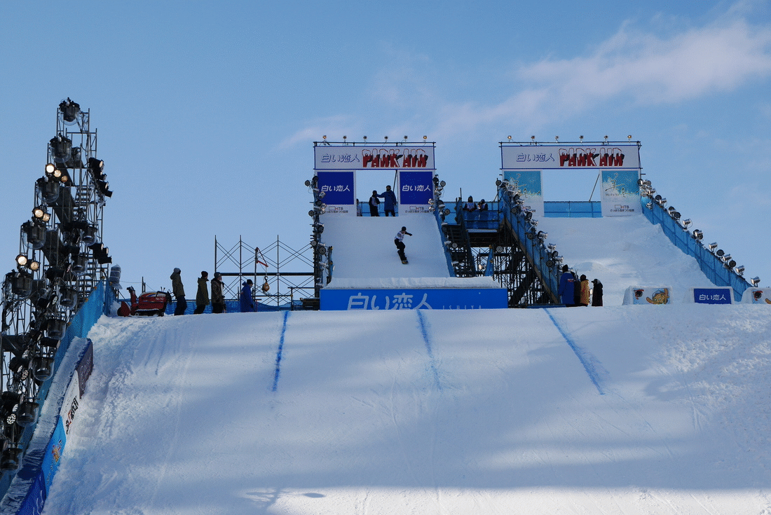 They had a big air jump set up in the festival area, above are some of the snowboarders practice jumps