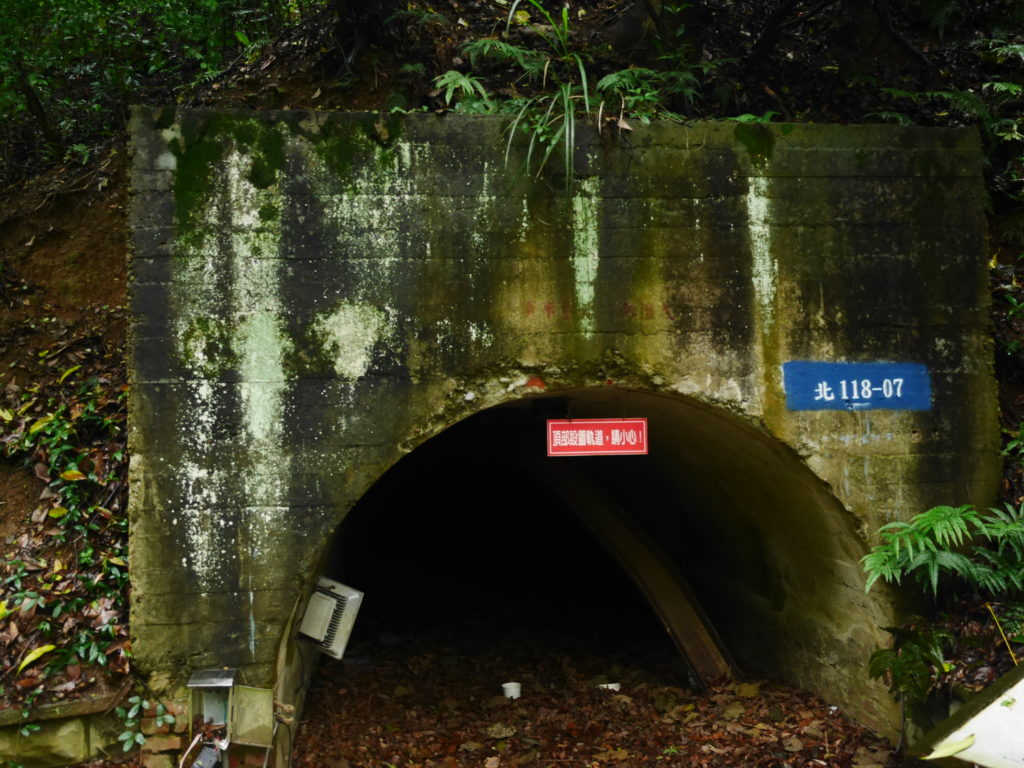 In Hsinchu City, not far from the very center, is a hill somewhat ambitiously called 18 Peaks Mountain. As you might guess, it’s not much of a mountain but local people like to go there for “hiking“ and jogging. The main entrance is big with several parking lots nearby but there is also a second entrance on the backside. Actually there are two entrances on the backside, the nice new one and the dilapidated old one. Last weekend I took my son out for some toddler friendly hiking and figured it could be fun to try the backside entrance. It was a pleasant but short hike and as we were coming back down we took a slightly different path and came out by the old entrance where, to my surprise, I spotted several tunnel openings in the hillside. The timing wasn’t right that afternoon, but this weekend I decided to go back and check out those tunnels.