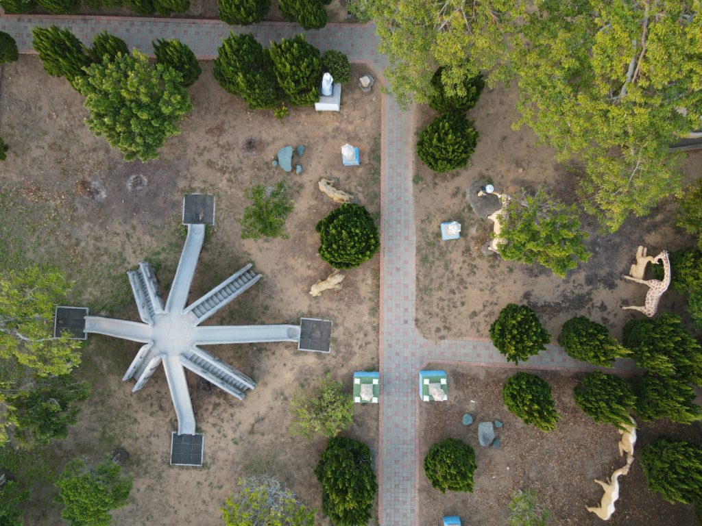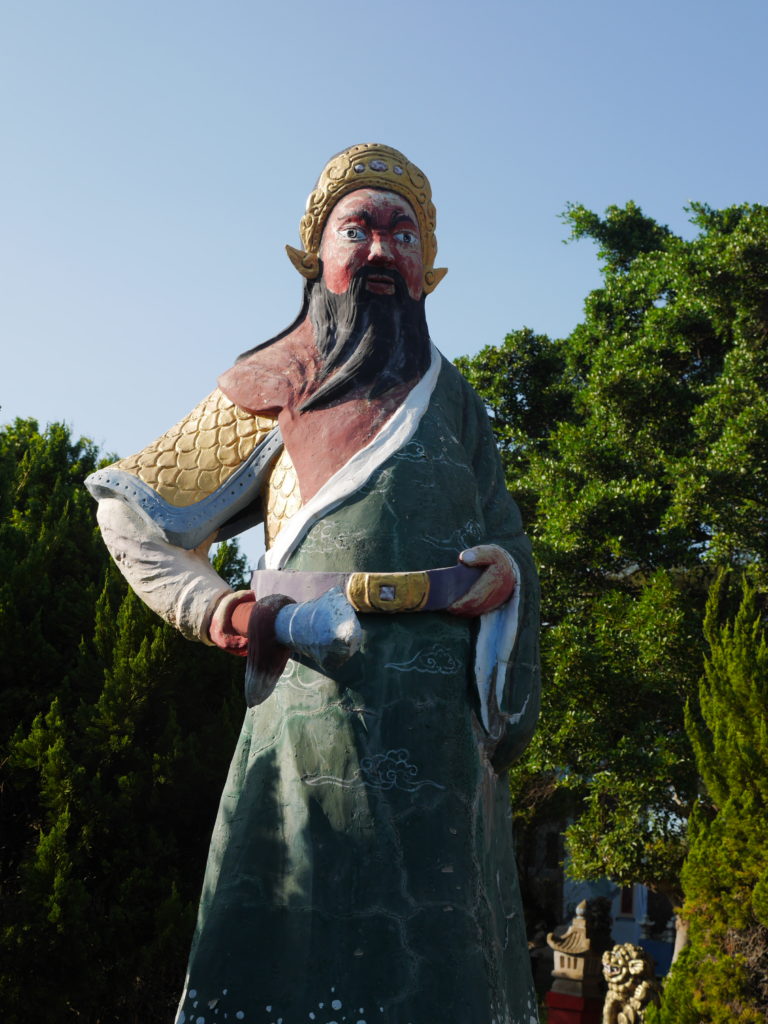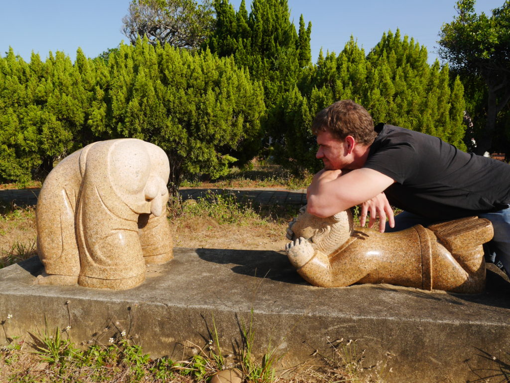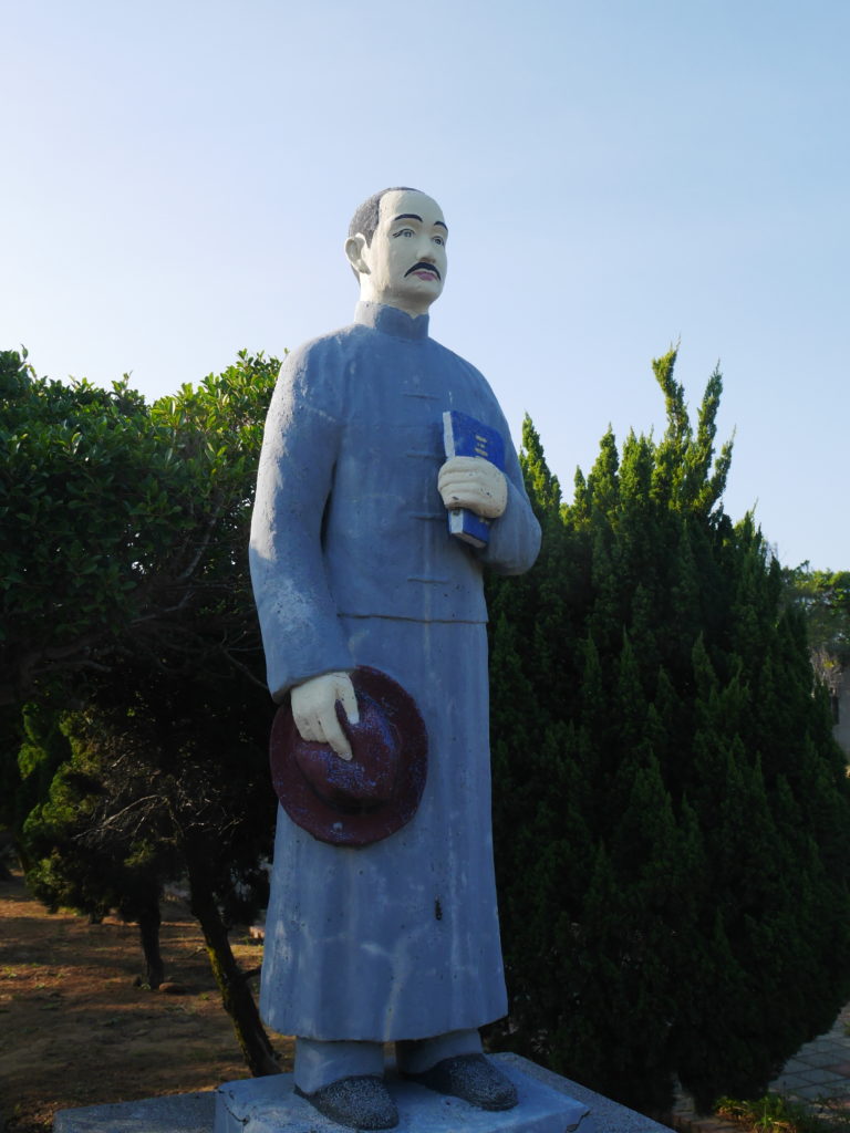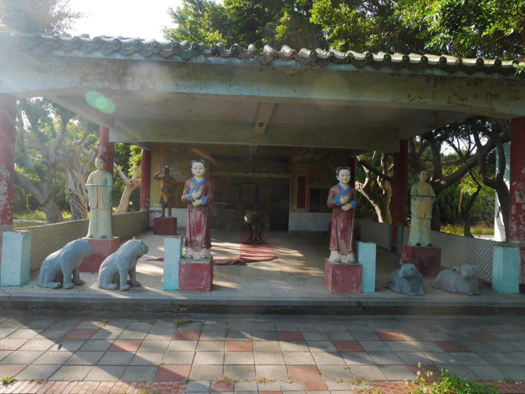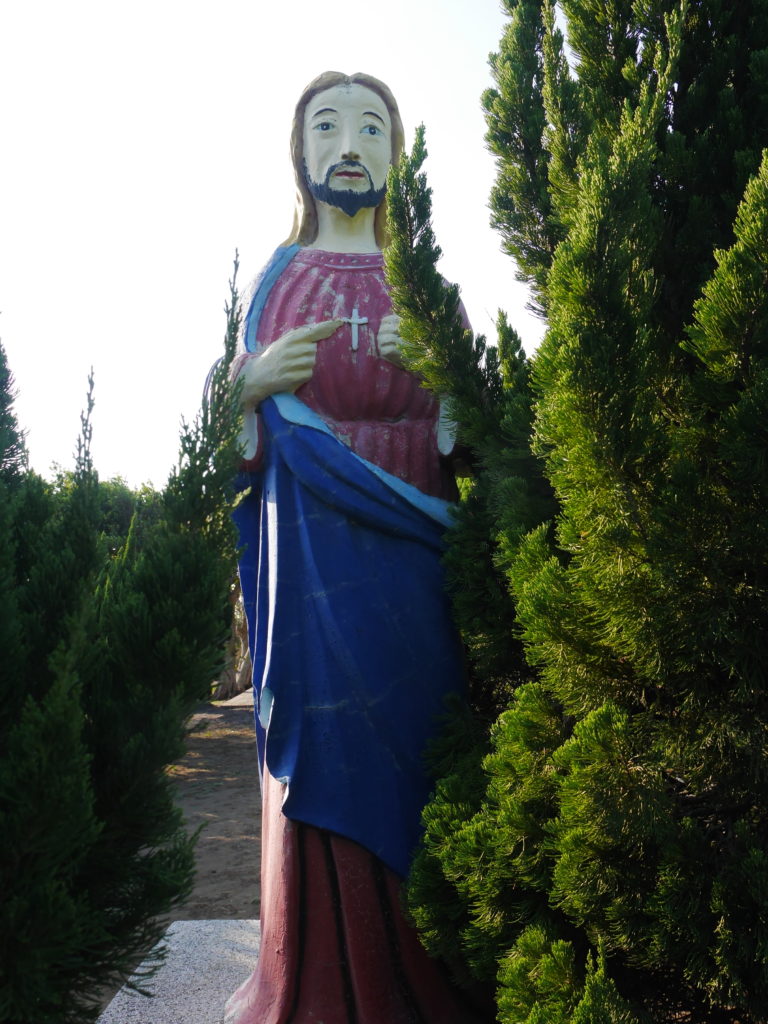 One such place is Qiumaoyuan statue park. As you can see from the map link, it is marked as a tourist spot, but you have to zoom in a fair bit in order for it to show up. There are a couple different aspects that make it really odd and, as you can guess, worth visiting for anyone with even a passing interest in such things. First is that the collection of statues it houses is so incongruous; there’s a wild mix of everything from Buddha to Jesus to animals to political propaganda and anything in between – there’s even a random cowboy for some reason. Second is the low quality of the statues. Many of them have been made with fiber glass, a material which is really not suitable Taiwan’s climate. Moreover, their design is rather sub-par, with many of the them – especially the animals – having a facial expression that makes them look either surprised and/or dumb. Third is that there are a number of temples inside the park that all have the same general size and shape, but are clearly meant for worshiping different gods; sort of “select your preferred religion”. Fourth is the fact that the place is in a state of neglect. Some parts of it are overgrown with weeds, several of the statues are cracked and broken, and there’s a general feeling about the whole place that they do just enough maintenance to keep it from falling into ruin completely. At this point I think it’s time to show some pictures so you can see for yourself.