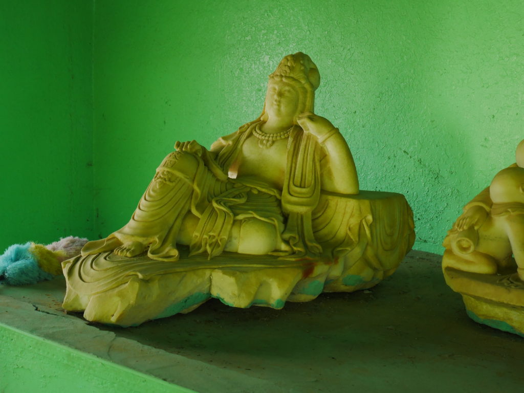 In one corner there is this…wedding cake of Buddha statues. Around it there’s a bunch of other figures from (presumably) Chinese mythology.