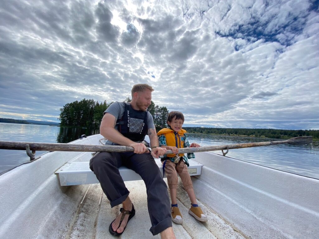 My family is fortunate enough to have a cabin by a lake out in the woods. When I was young I always enjoyed spending time there; swimming in the lake, rowing the boat, or going going for a stroll in the woods. It’s not too far from my parent’s house so we never stayed there for more than a couple of days in a row, instead opting for shorter but more frequent visits. It is however a very long way from my family’s house in Taiwan, so when we finally did go back to Sweden this summer, we thought it would be nice to stay for a longer time. That way me, my wife and our son would have plenty of time to to enjoy the things we wanted to do without feeling rushed. That turned out to be a great decision. We did all those things that you’re supposed to do during a summer in the cabin. We went mushroom picking in the forest, we went swimming in the lake; we rowed out to the little island just to have a look around; we picked berries in the garden and helped repair the broken jetty; we went fishing for crayfish but only caught a few; we had our meals outside and enjoyed the late sunset, and at the end of each day, my dad lit a fire in the fireplace so he and his grandson could sit a while watching the flames. I don’t think I need to say much more, from now on the photos can do the talking.