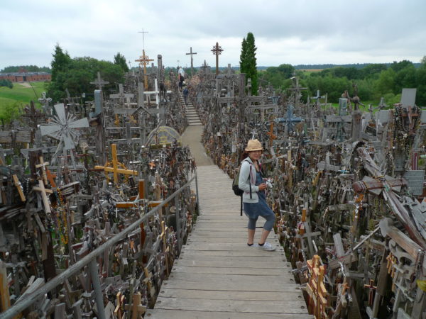 Today we visited what is supposed to be Lithuania’s most incredible place – and you will see why I agree with that statement. The hill is a short distance outside the town of Siauliai so – on recommendation from the tourist office – we rented a couple of bikes and off we went. You notice directly when you have reached the place because you see the hill from a distance and once you do you just want to get closer.