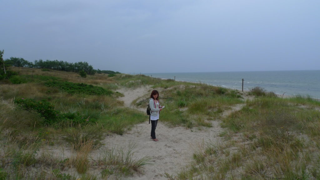 Having considered all our options, we realized that the best day for seeing the monument was not today, as I had hoped, but tomorrow so expect to read more about it then. For today we opted to go by train to Klaipeda, Lithuania’s main harbor city where we quickly left the urban sprawl for the 98 km long Curonian Spit peninsula. This thin tail of land hangs off Kaliningrad, shooting northward until it reaches Klaipeda. At the tip it only takes about 10 minutes to walk across it, however since several villages are located here, it must be wider at some point.