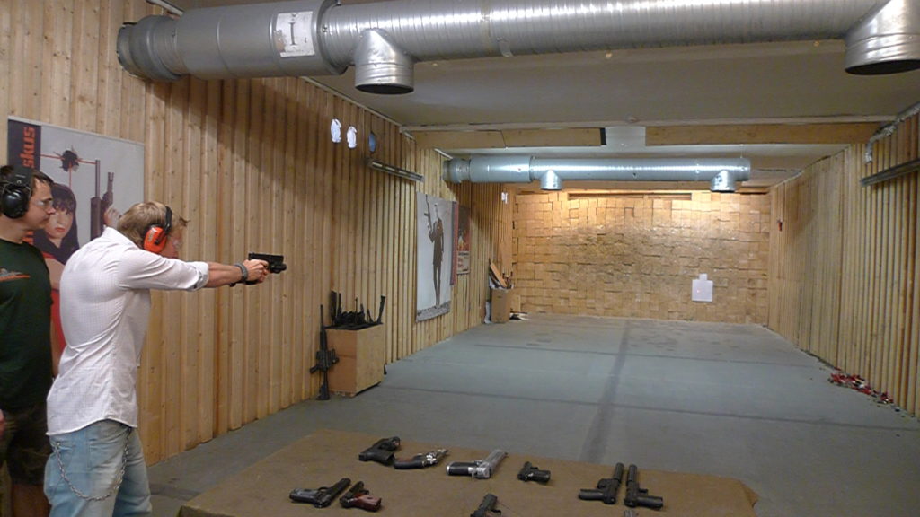 Today has been a much better day than yesterday, I’m back to my normal happy self. We started by some shooting…or rather I did the shooting while Yini acted as a photographer. I got to shoot a revolver, a 9mm pistol and a tactical shotgun. It was loud, forceful and fun, much more so than what shooting we did in the military. The shotgun especially was an experience since I was shooting from the hip, the kick of the thing was so strong I actually got a bruise on the side from it.