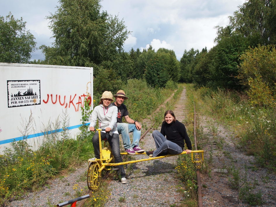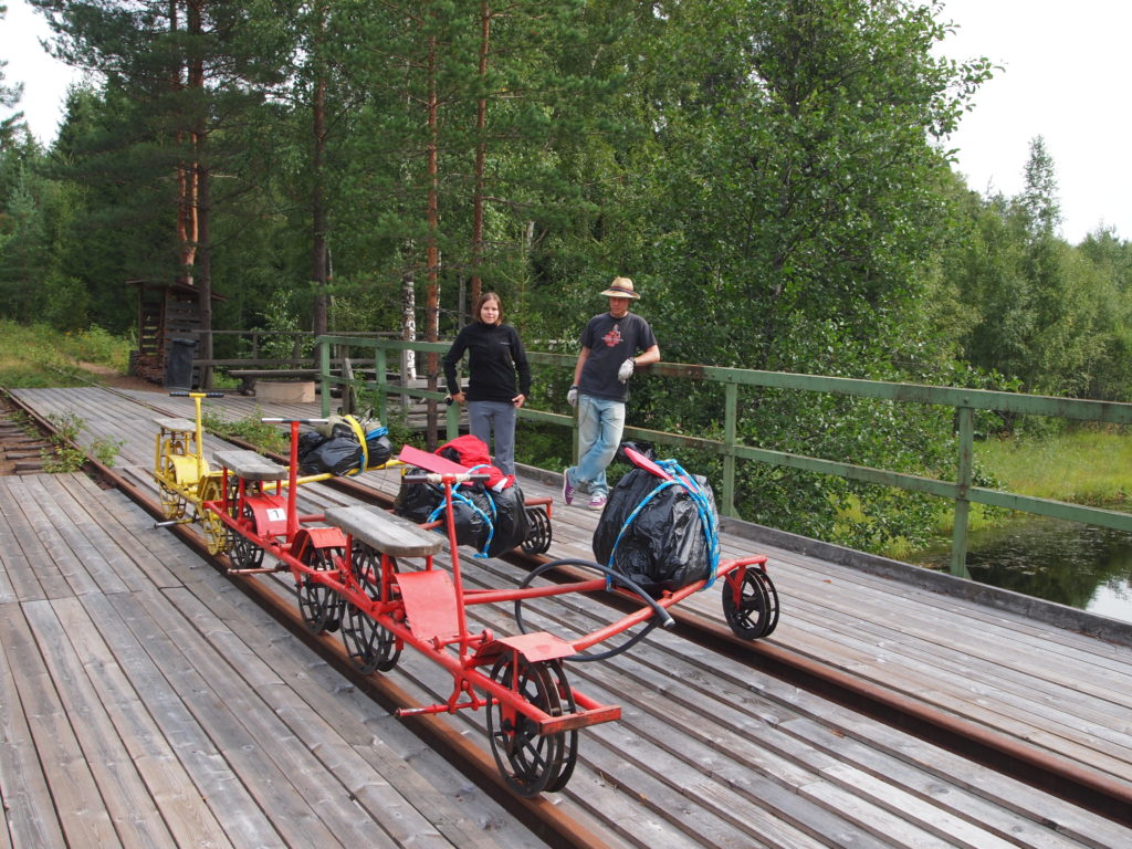 Yesterday we started the main adventure of the Finish part of the journey – riding Draisines (I decided to come here and do it when Reetta told me about the possibility six months ago). We got to the starting point in the afternoon, tied our gear to some rented draisines and set off along the rusty track, pumping our way through the low vegetation, accompanied by the sound of mechanical thunder. It is some how easier than biking, more fun than walking and above all, very special.