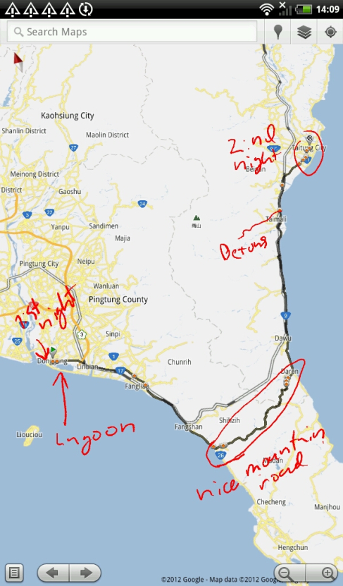 For a while now, me and my girlfriend have been planning a small adventure and today, having landed in Taiwan just yesterday, we finally got on the way. The plan is simple: drive my scooter from the south of the island, north along the east coast and stop along the way at interesting places; a kind of random sightseeing.