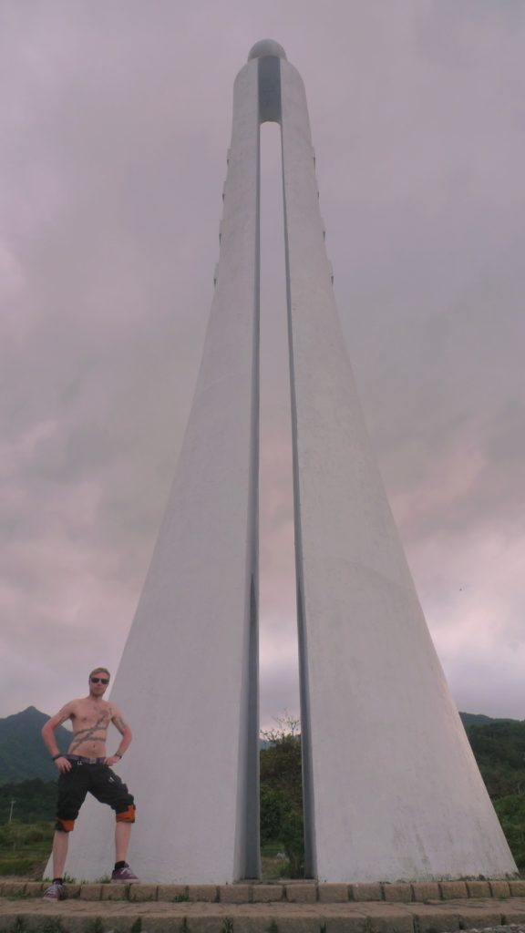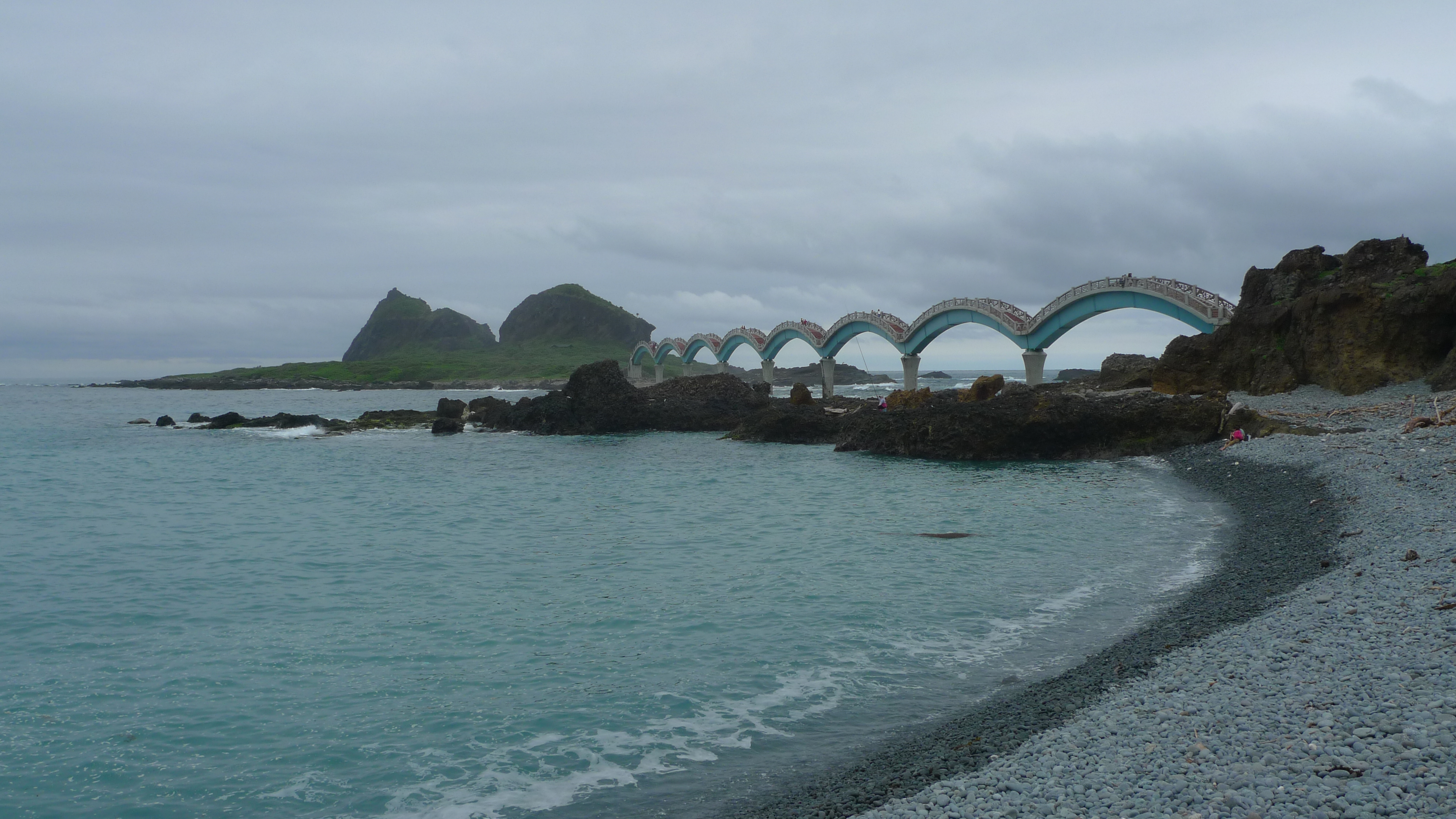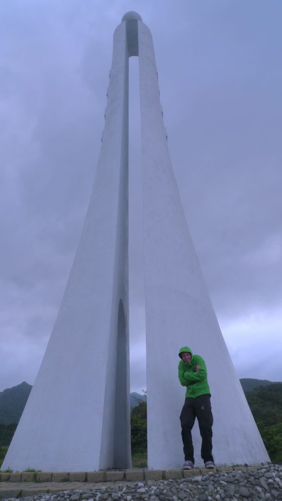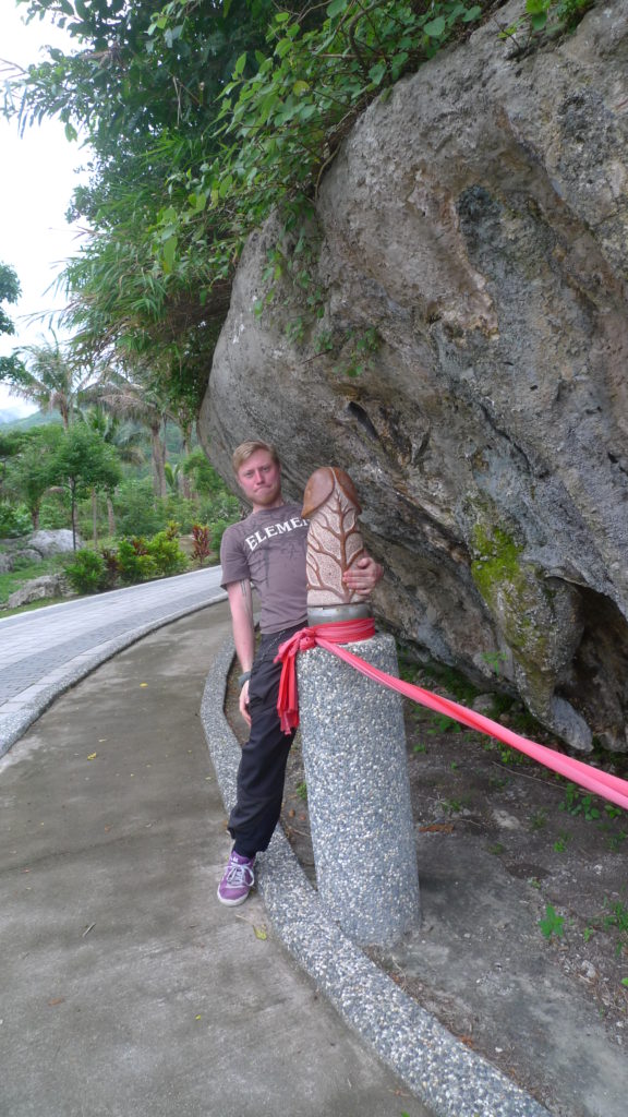 We’ve done so many things today it’s hard to summarize it all without missing anything. From Taidong we drove to Hualien, a distance of some 160 kilometers which should take no more than three hours or so. However, it took us all day thanks to lots of random tourism. There was the beach side park full of installations; there was the detour up a mountain for a birds eye view; there was the old bridge over a river right next to the new one; there was the cave made into a temple and many other short stops at more or less interesting spots. The most memorable parts of the day though deserve a bit more attention.