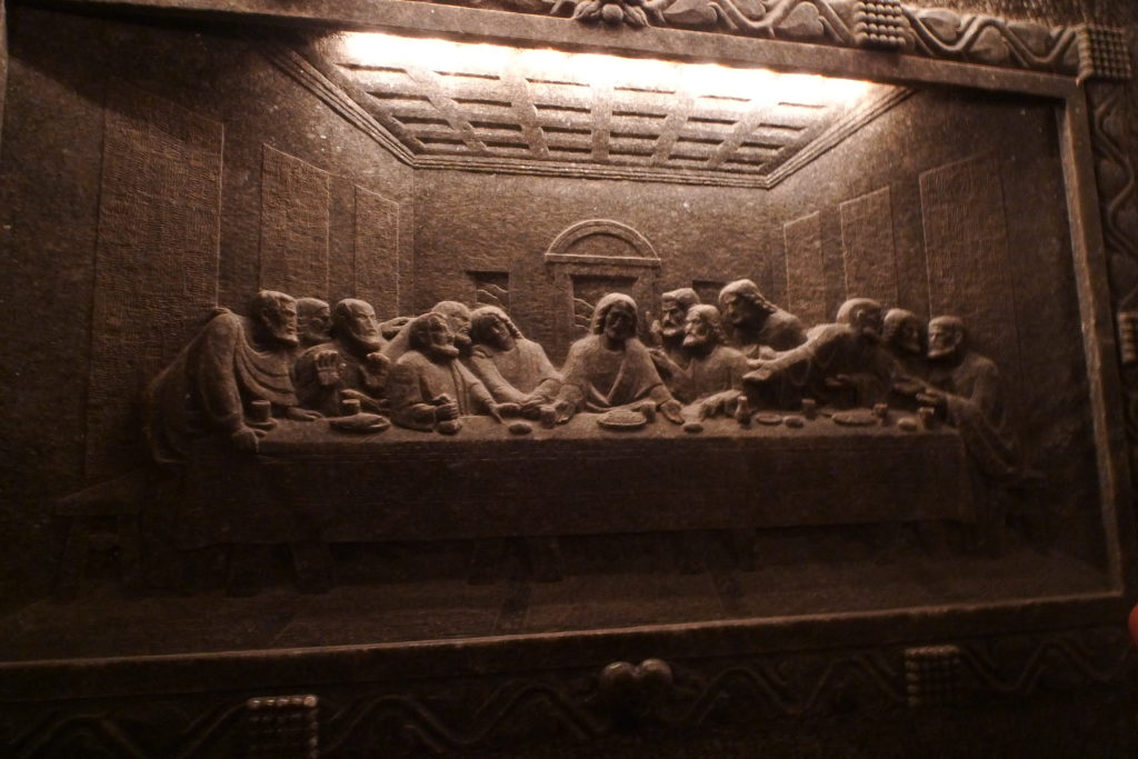 We descended down a seemingly endless set of stairs. When we got to the bottom we set off on our walk through long, wood lined corridors and chambers of pure rock salt. The special thing about the place is not just the vast landscape of tunnels and chambers dug out under ground, but also the decorations. Here and there were statues hewn from the salt, and the miners of old even made chapels and churches. The guide was good as well, ending each presentation with a joke. The pace was a bit off though, especially since I was trying to get good photos.