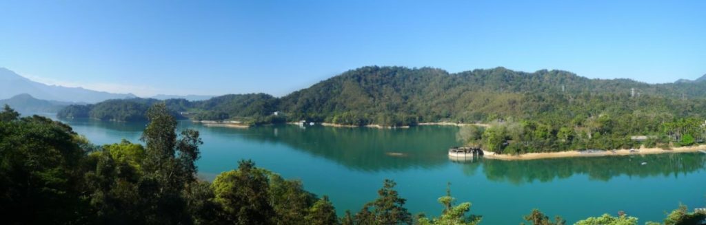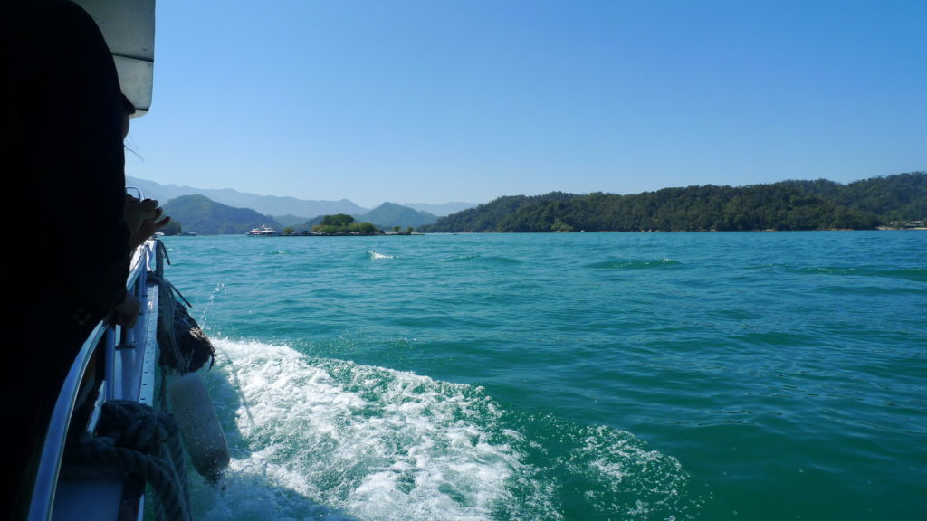 Crossing Sun Moon Lake by boat, Lalu island in the distance