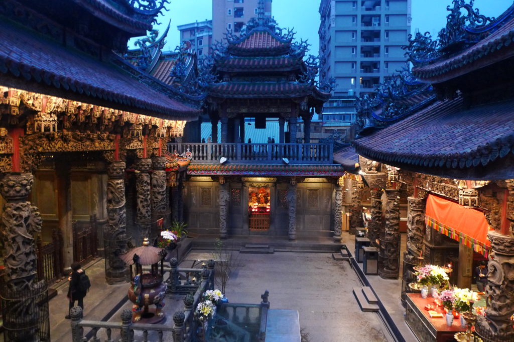 From the bat cave we made dash north towards Sanxia, arriving just before dusk. At the end of a preserved historic old street, we found a fairly big temple. Now, I normally don’t take pictures of temples anymore, they are far too abundant in this country for me to care unless they are special. The one here, Zushi temple, was awesome. It’s made with real wood and stone, covered in more carvings than any temple I have ever seen. All the carvings hand made, and the place had a proper old feel to it. In short, a temple really worth visiting.
