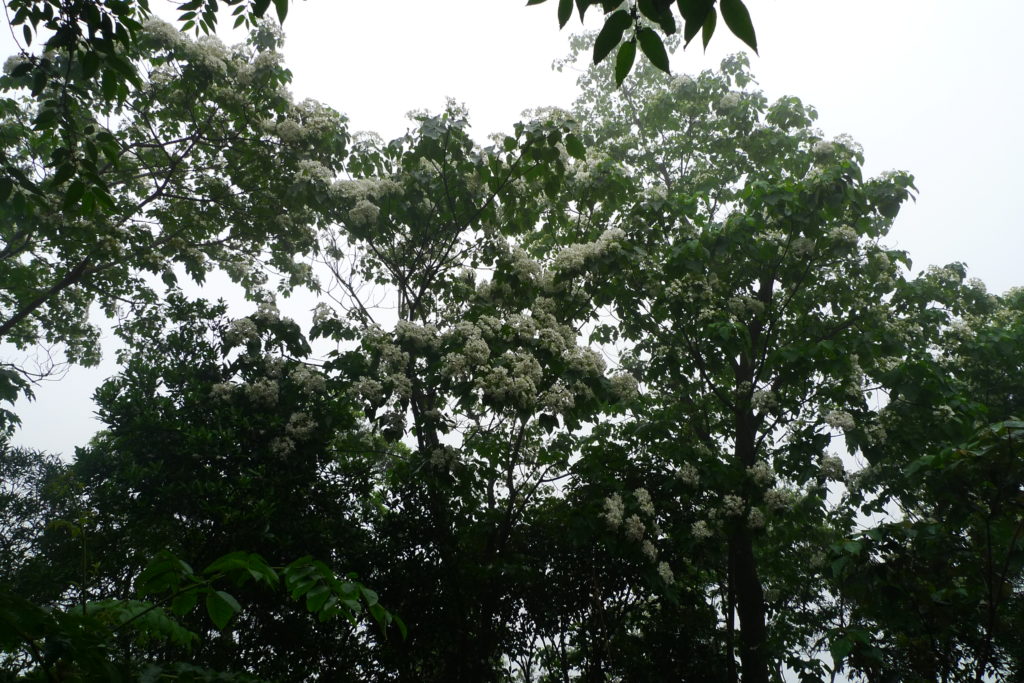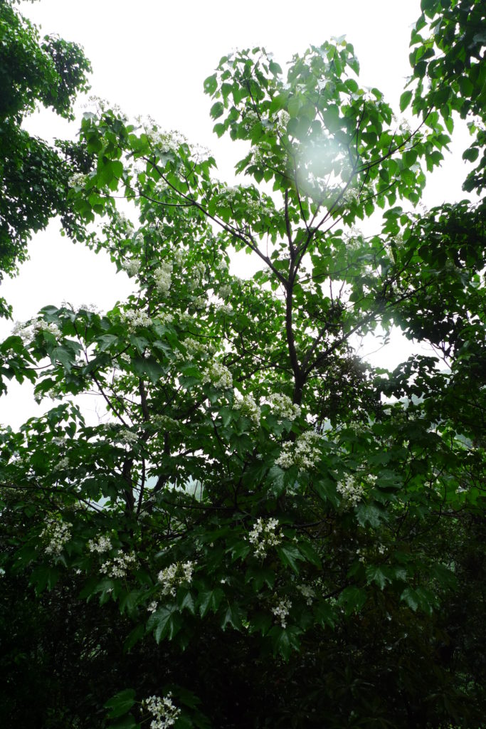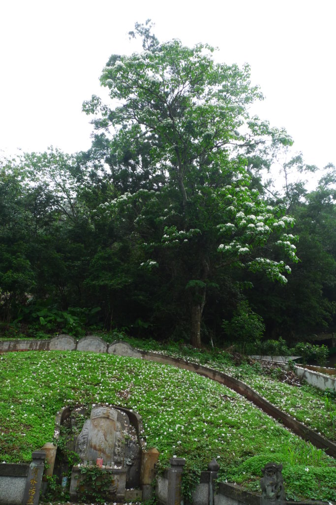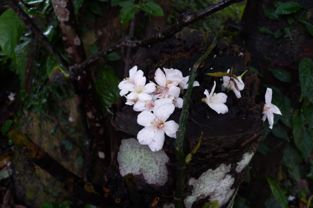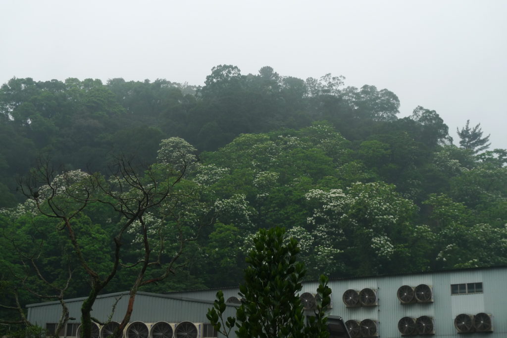 Spring in Taiwan happens to be the season for two things, namely Tong flowers, the Taiwanese counterpart to Japanese sakura, and fireflies. Despite a slight drizzle, me, Yini and our friend Kai decided to go out hunting for both. We started by driving north east until white blotches among the green of the mountains told us tong trees were abundant. We got out of the car and walked around for a bit, finding the ground littered with white blossoms.
