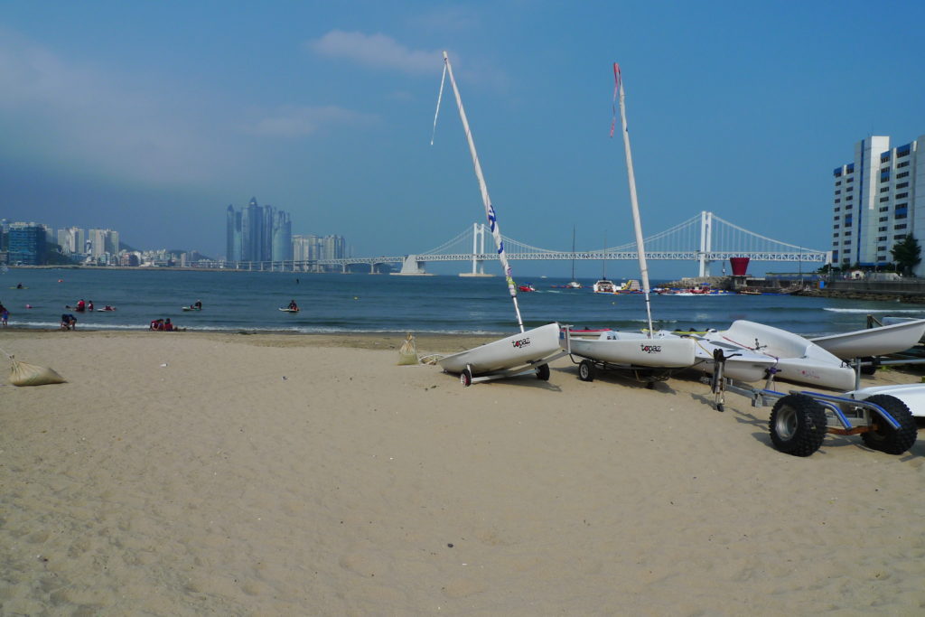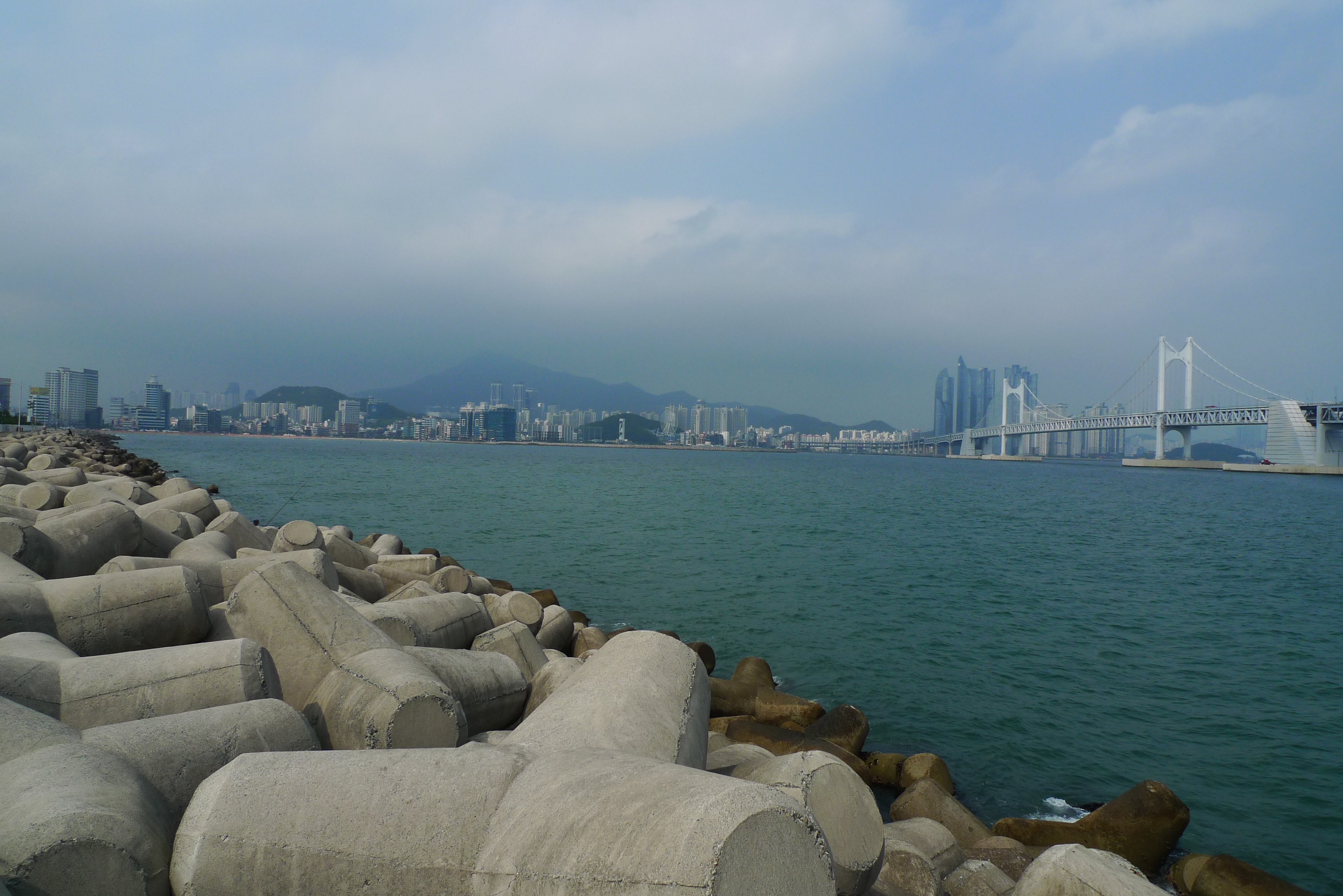 We rounded the peninsula on a small path, getting a great view of the shoreline. It took us longer than we thought to get to the other side; clearly the scale of our map was larger than expected. Therefore we decided to take the subway to the next goal rather than walk. We got off the subway at the wrong stop, then immediately got lost on the way out. We eventually found our way down to the water’s edge, right at the foot of a giant bridge that crosses the bay to the next peninsula. Following the wave breakers along the shoreline, we got to a bigger, more popular beach than the one by our hotel.