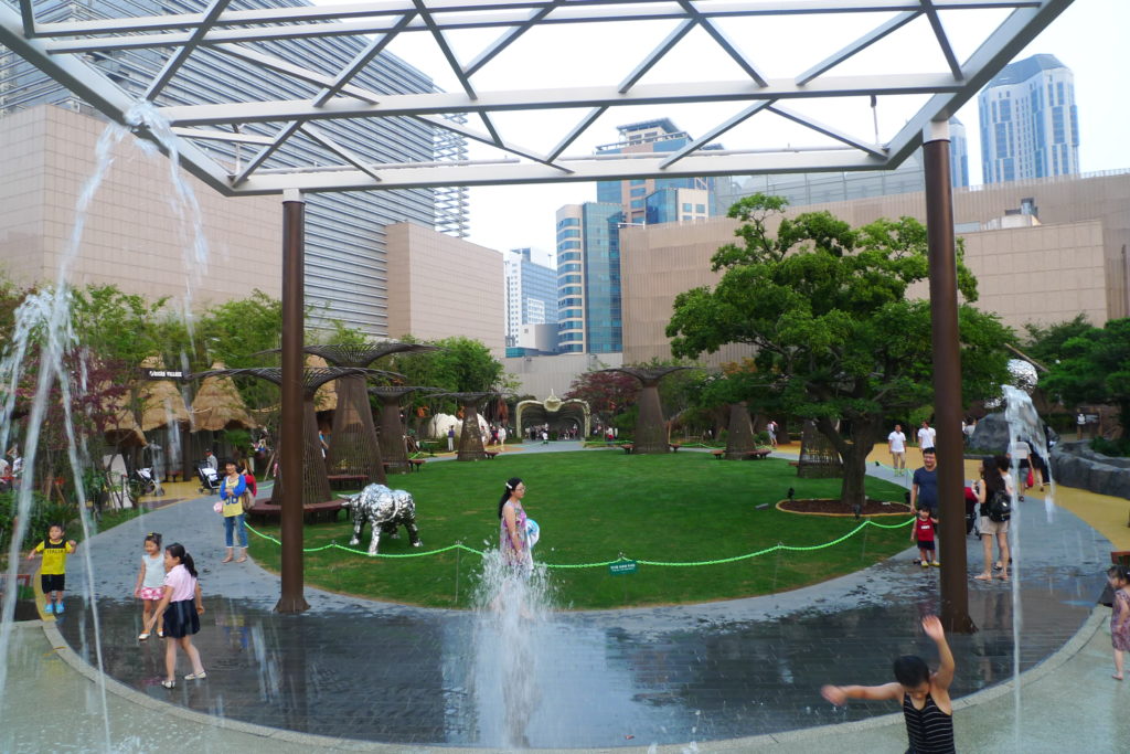 We got off the subway at Centrum City and aimed our steps for Shinsegae department store, claiming to be the biggest department store in the world. Though it was pretty big, it was not all that impressive. At least that’s what I thought until we got to the roof. This place has a big, dinosaur themed playground/garden on the roof, it was amazing, as was the view.