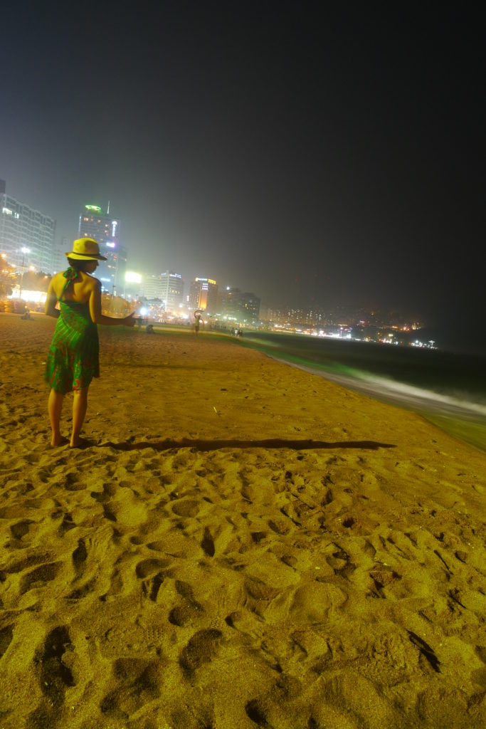 When the sun set, we headed back to our area, had some sort of disappointing sea food dinner, then took a stroll along the beach for some night views.