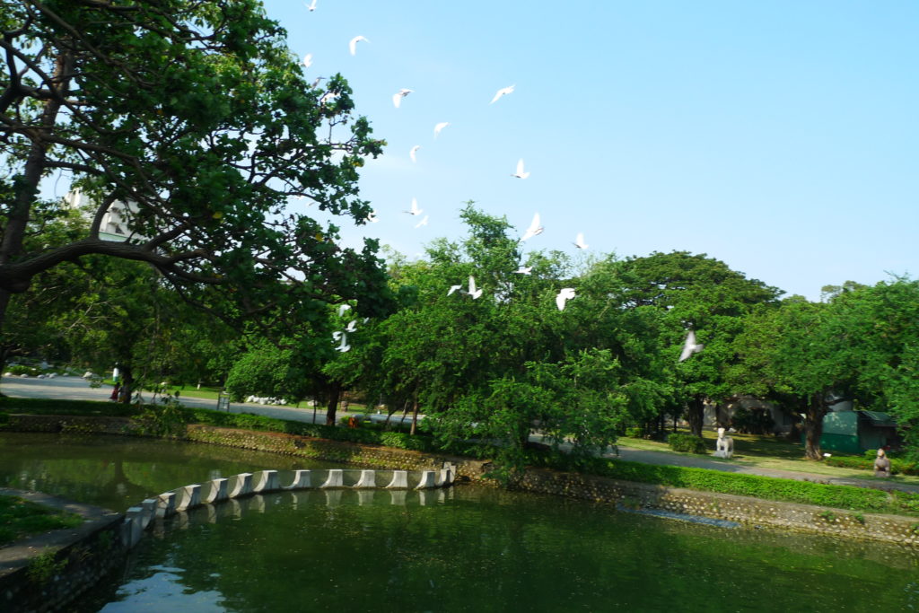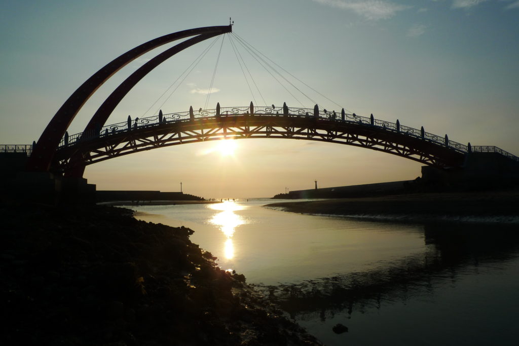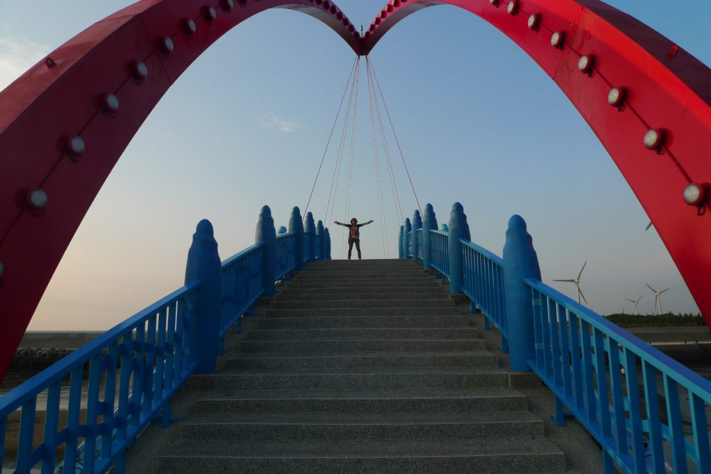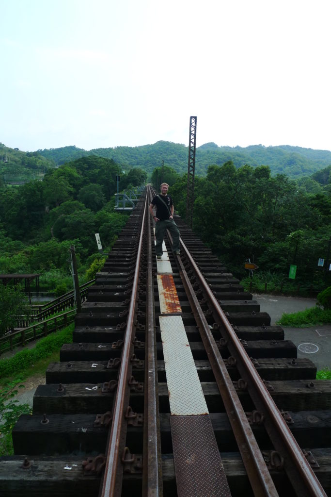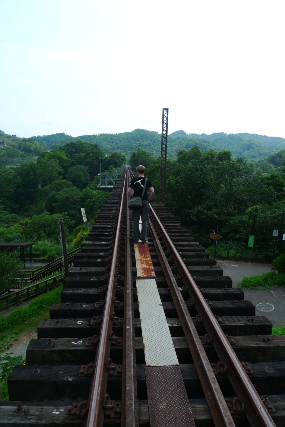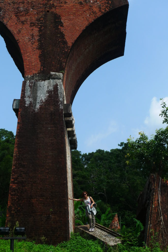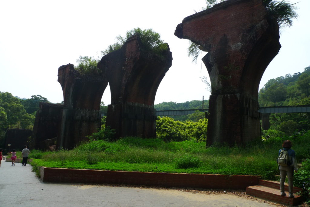 Like I said, getting there was more interesting for instead of taking public transport or driving like we usually do, we rode my motorbike. A few days before I bought a saddle bag for it, and I had ordered a box for the back, but didn’t receive it on time. So, on Saturday morning, we stuffed as much of our baggage as we could in the saddle bag (poor Yini ended up with a fairly big backpack) then rode south out of the city. There was a lot of traffic at first but it cleared as we left the city center. Riding was good a fair bit of the way, not too much traffic. As always when on a motorbike, you get a bit sore from sitting all the time so we had to make several stops along the way. The most interesting was the remains of an old train bridge in Sanyi, and big park in Taizhong city.