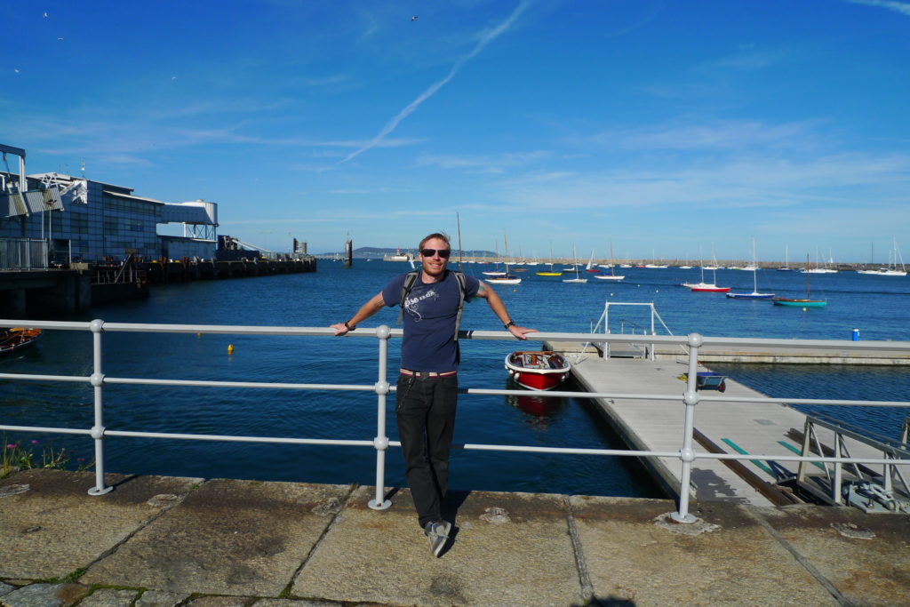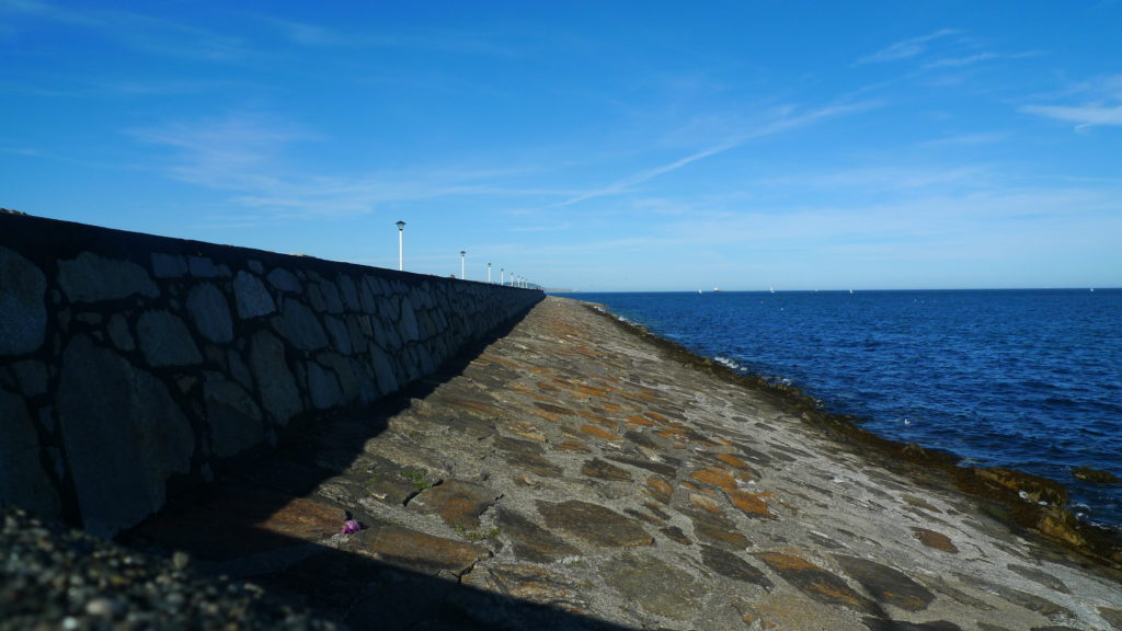 Me and the other guys landed on Sunday around lunch. After checking in to the hotel, the others were tired and wanted to rest but I headed out to see the city. We are in a small suburb of Dublin called Dun Laoghaire (for some reason this is pronounced Dun Leary), just by the coast. So, I caught a bus down to the town center and walked down to the harbor and out along the pier. It was a gorgeous end of summer’s day, sun shining brightly above and a cool breeze in my face, and I had a really enjoyable stroll. Naturally I also snapped a bunch of pictures, so with no further ado, picture time: