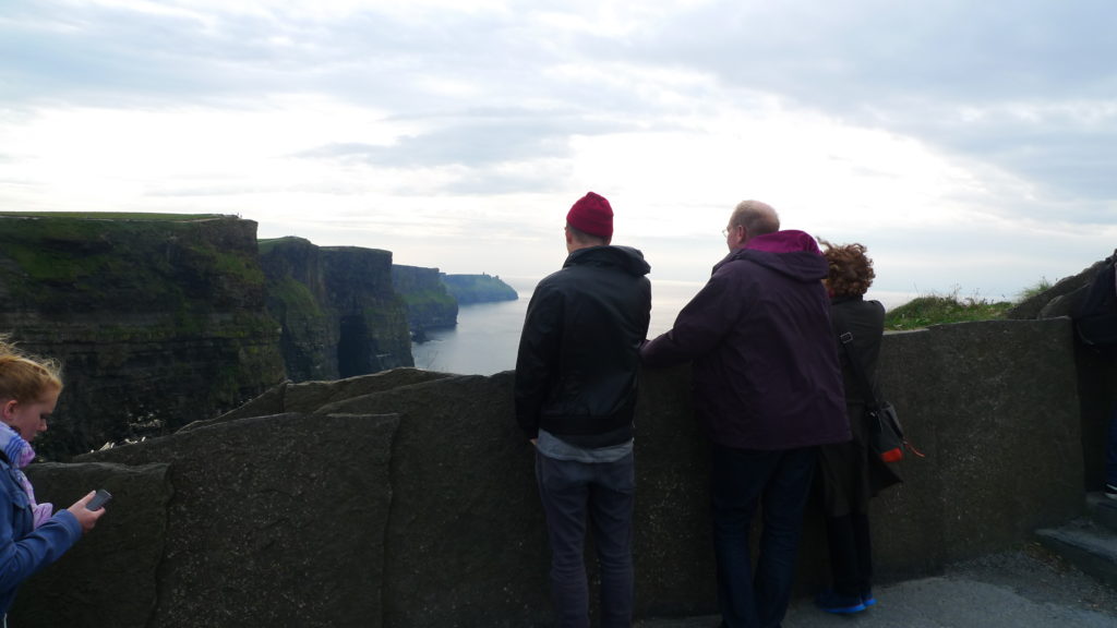 On the weekend my parents and brother came to Dublin to meet up with me. We had a nice dinner Friday evening, then Saturday morning we rented a car and drove west to the Cliffs of Moher. We got a hotel in a small village called Lahinch, not far from the ciiffs, then drove out there. The cliffs are really something; the green hills of Ireland dropping off dramatically straight into the Atlantic. It really fills you with awe to stand on the edge and loook out over this marvelous sight. I can understand why they were put in one of the Harry Potter movies.