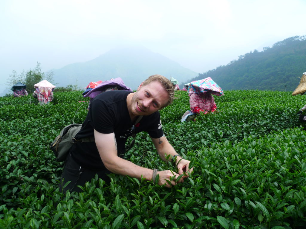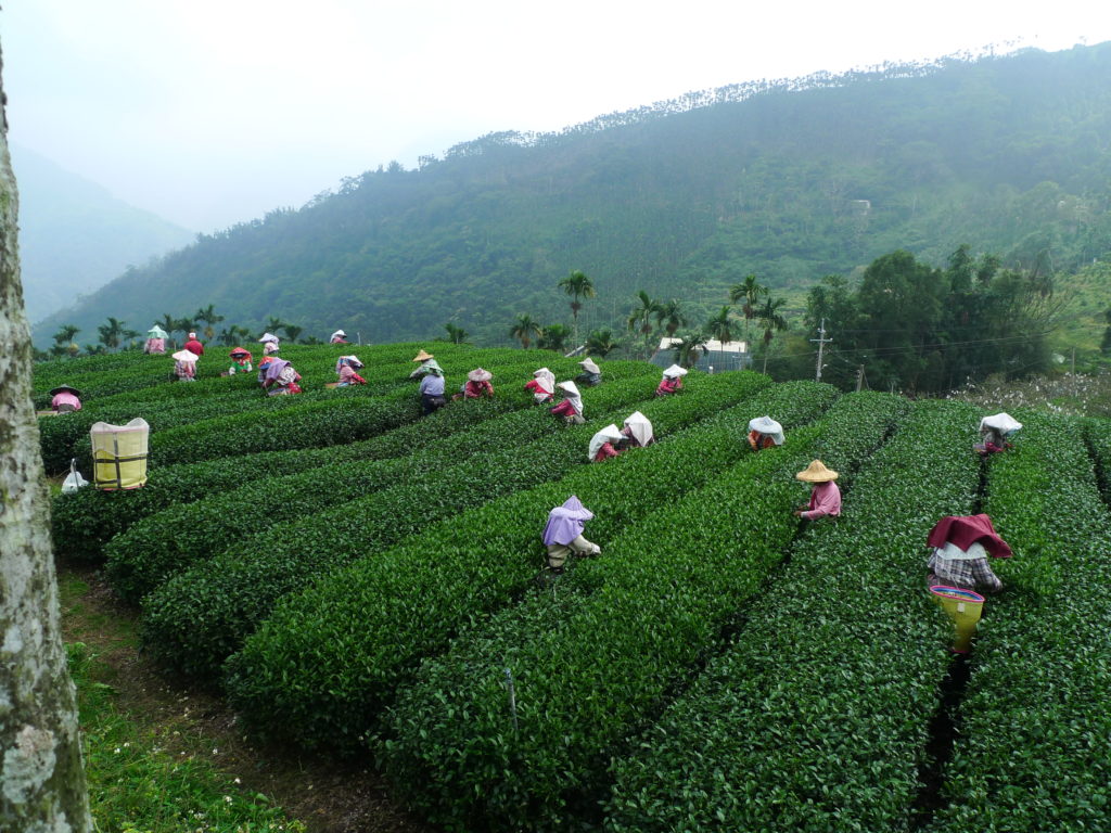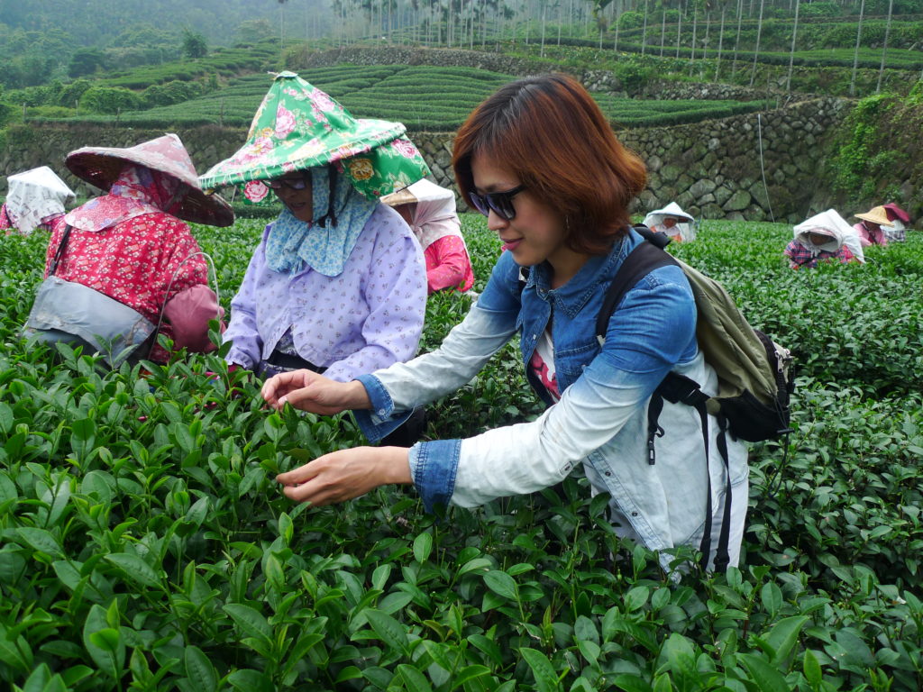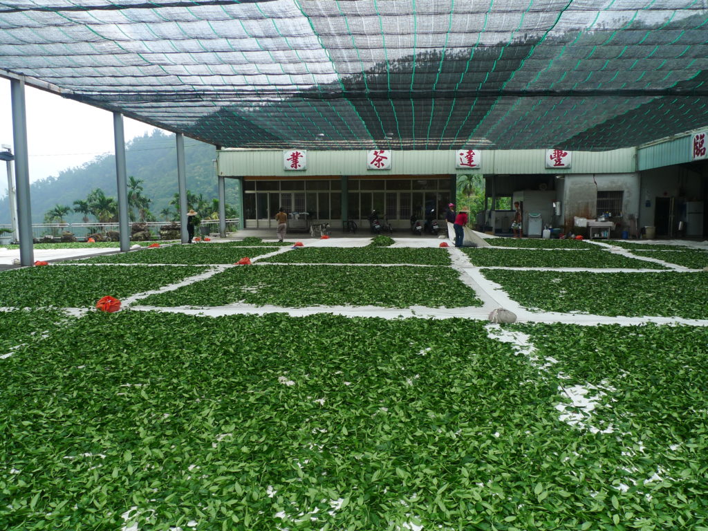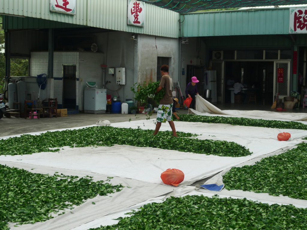 Friday we headed into the mountains of Yunlin on small, bumpy roads. Some of the roads were extremely steep, we even had to make a detour because one of them was broken. Along the way we stopped by a small tea farm, mostly just to stretch our legs, but the tea picking ladies took a liking to Yini and even let us pick a few leaves. The boss also treated us to tea in different stages of processing.