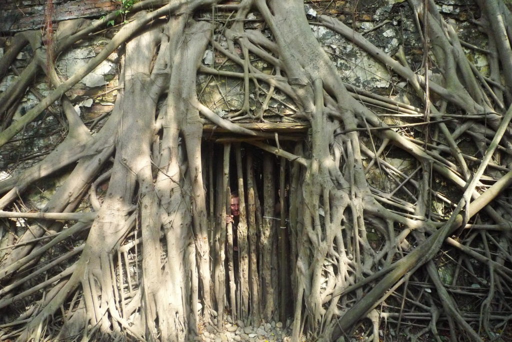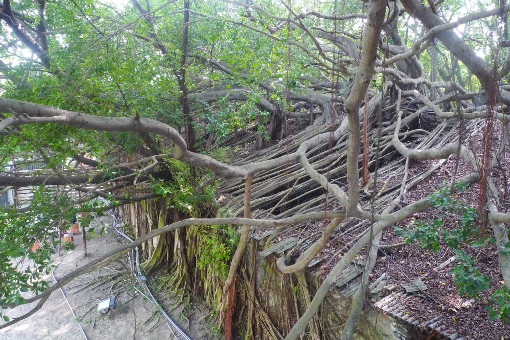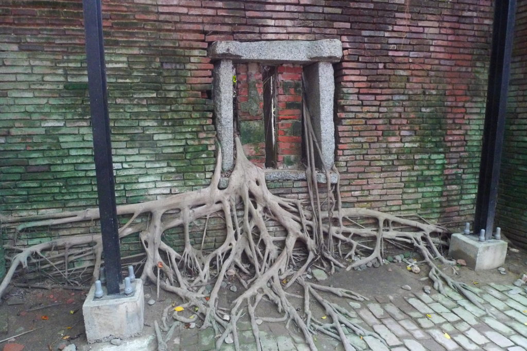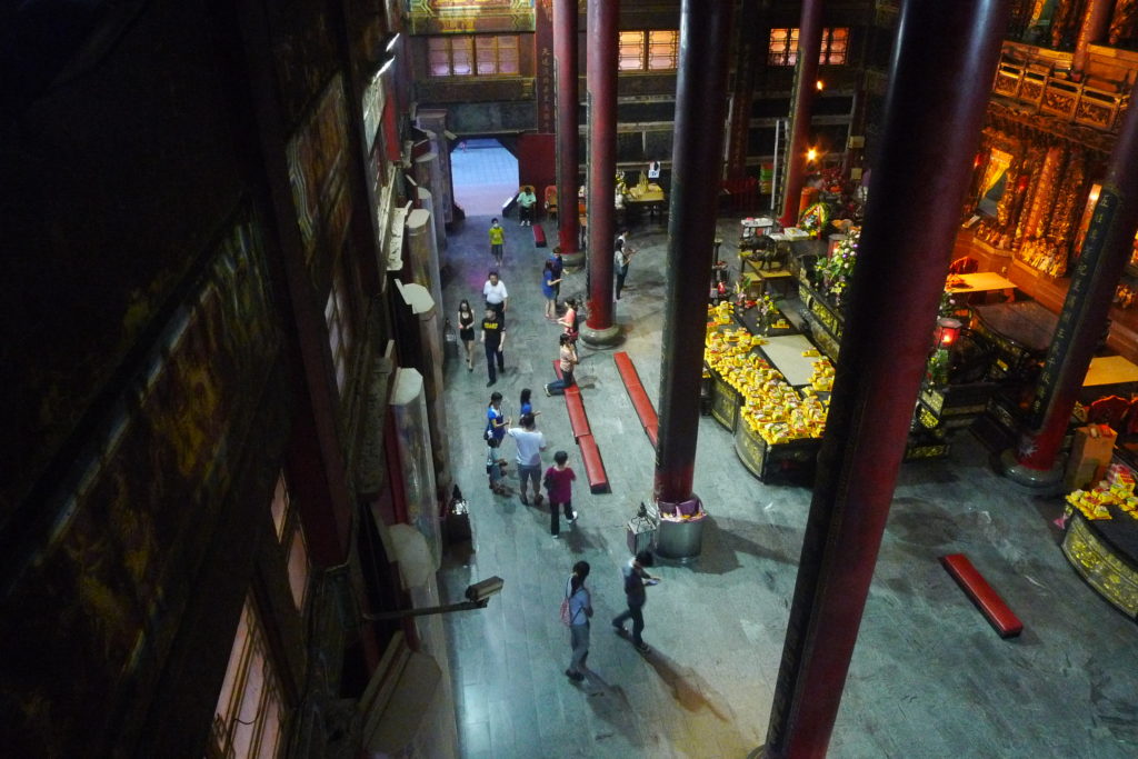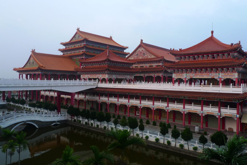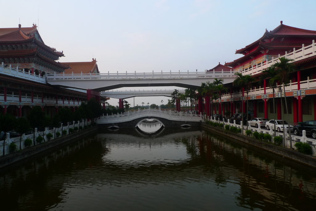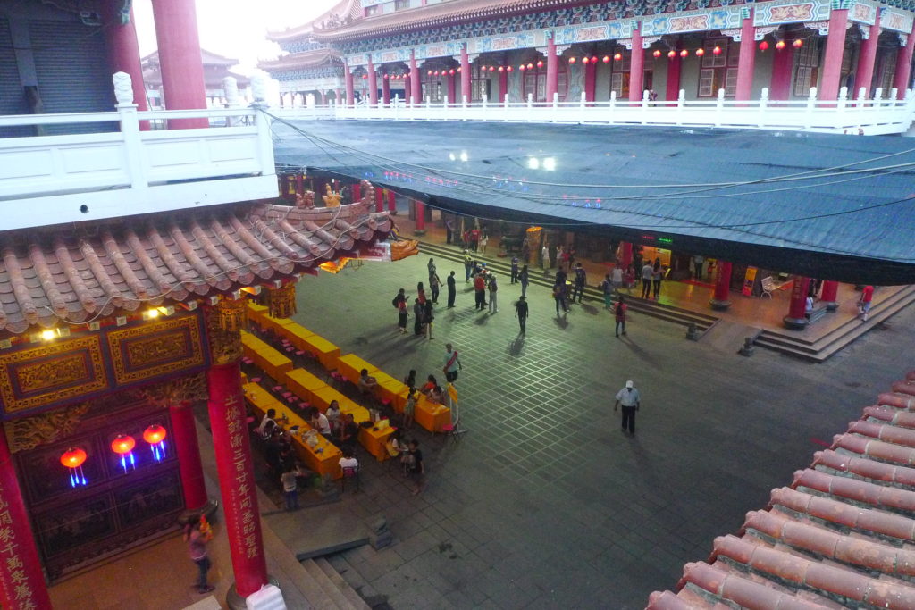 Once we found the correct road, we wound our way down from the mountains, stopping by a small cafe for dinner. Thinking we would rather wake up in Tainan the next morning than spend the night in the mountains, we rode on through the evening, reaching the city around ten. We spent Saturday exploring the city, and saw, among other things, the Anping Tree House which is an old wareouse overgrown by trees, and a gigantic temple.
