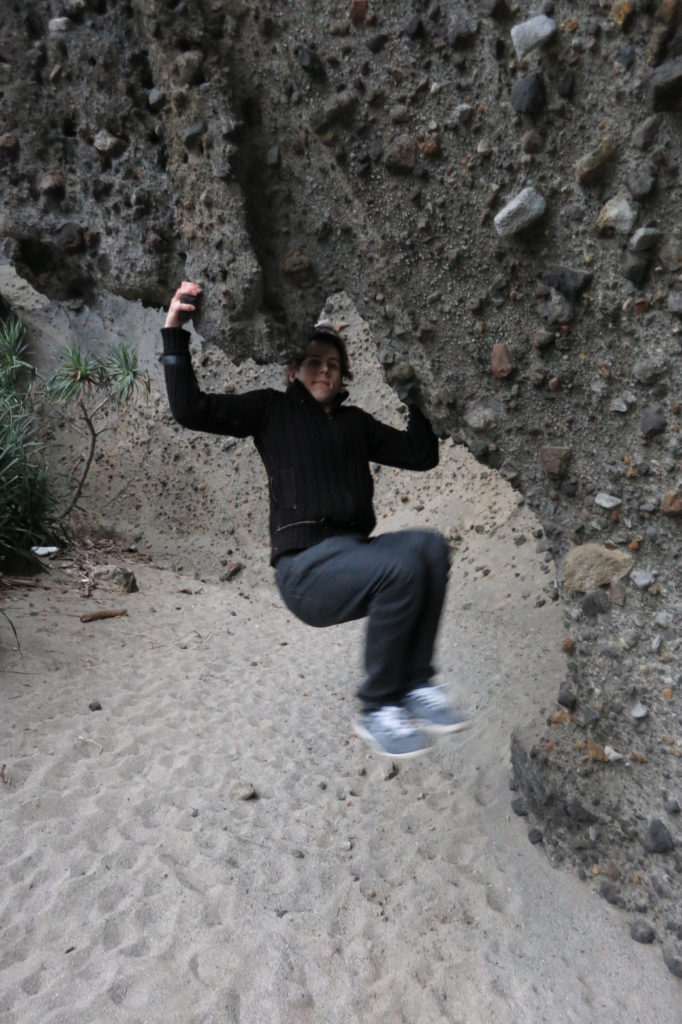 There was a lighthouse, several kilometres of beautiful coral coast line, a number of caves and some lookout points high atop cliffs and mountains. In my opinion by far the best though was a small cove on the north east, where we first found an abandoned village, then a natural rock climbing wall, with lots of small rocks embedded in petrified mud, and even a waterfall.