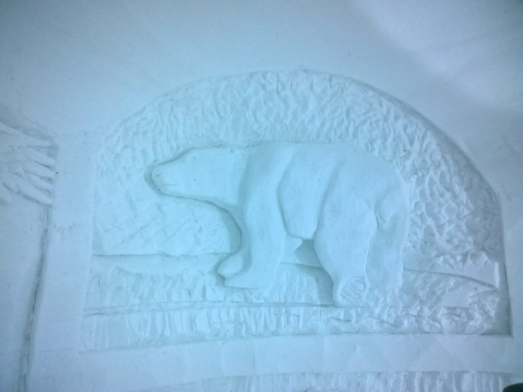 Polar bear carving on the wall