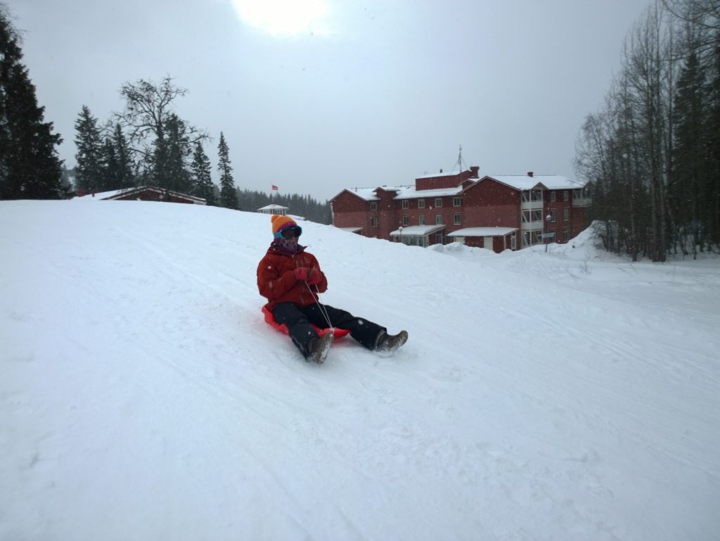 The last day, Yini was bit tired, so I joined my parents for skiing in the morning, which was pretty nice. We came back to the house in the afternoon and me and Yini went out with the sledge again and had a couple of really nice runs to end the week with.