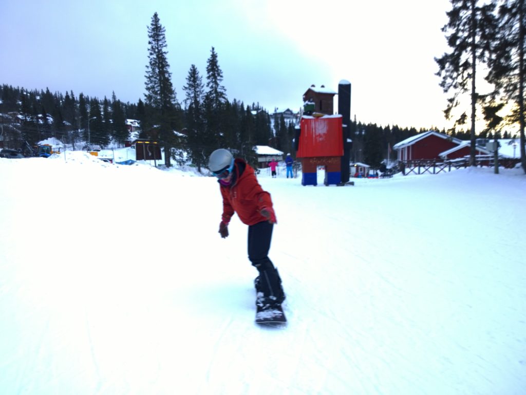 The second day in Åre, we rented some gear for Yini and i started teaching her snowboarding. It went slow at first, and she fell often but after lunch, she suddenly started getting it. After that she got steadily better by the hour. Though there were a few falls along the way, we kept at it for three days, and at the end of the third day, Yini managed to take the lift up ashort slope and go all the way down without falling. Very well done I think.