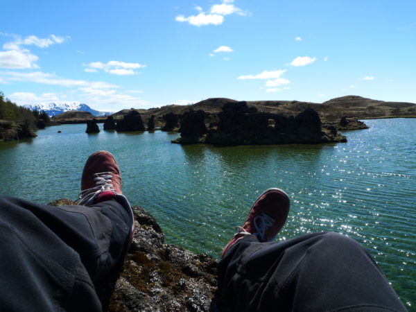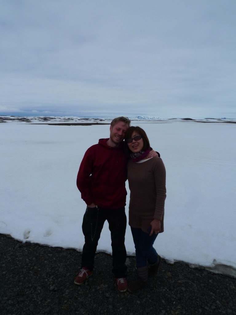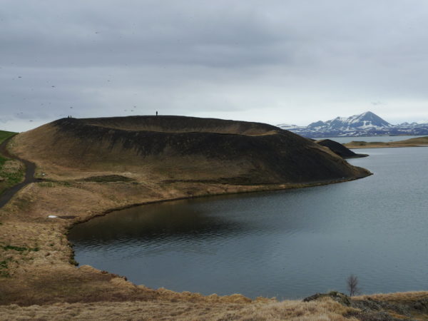 Today we kept exploring the area near lake Myvatn, starting by driving back up to the highlands towards mount Krafla. When we were getting close to our destination we started seeing cars parked along the side of the road and soon found out why. The road simply ended right there in a snowbank, the rest of it covered in snow. No matter, we parked by the road just like everybody else, then walked the rest of the way. The place we went to was another crater, this one partially covered in snow and the bottom filled with turquoise water frozen … Read the rest