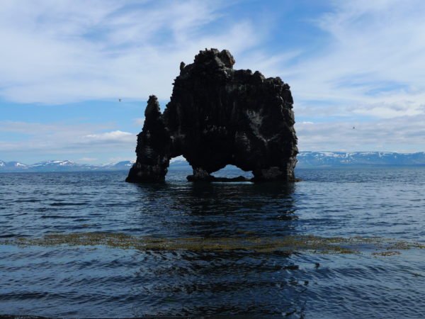Today has been yet another driving day, we left our little guest house quite early, and drove westward through gently rolling hills of green pastures. Since we had time we made a detour out to a sightseeing spot called Borgarvik, an old kind of fortification on a cliff top, and not far from there, a strange cliff formation in the sea.