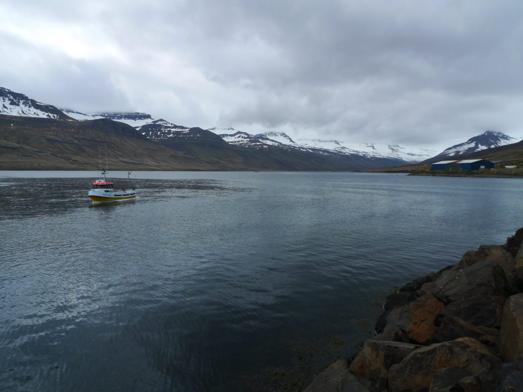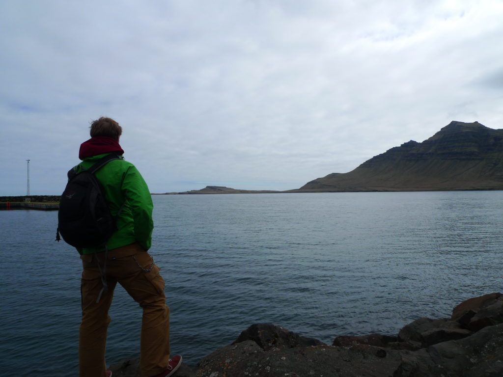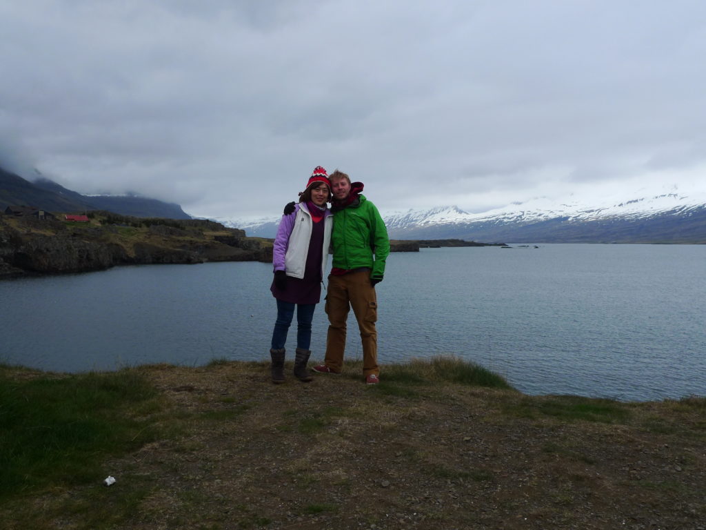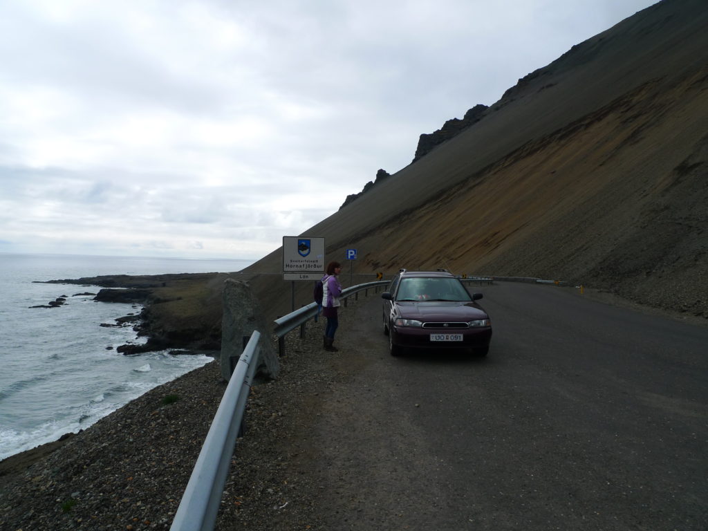 Towards the evening, we turned off the road skirting the fjords and drove more inland. We soon came into a kind of narrow valley with big patches of snow on both sides, the sky clearing up and the the road open in front of us. Though we are getting more used to the constant beauty of this country, we were completely overwhelmed by this sight.