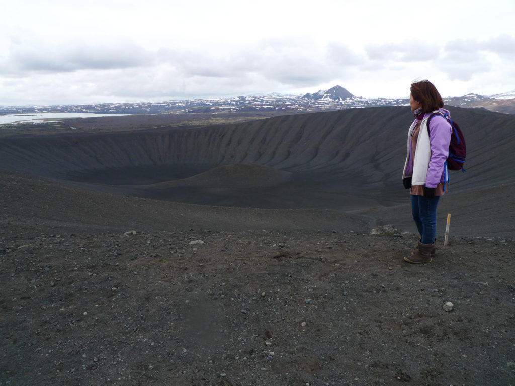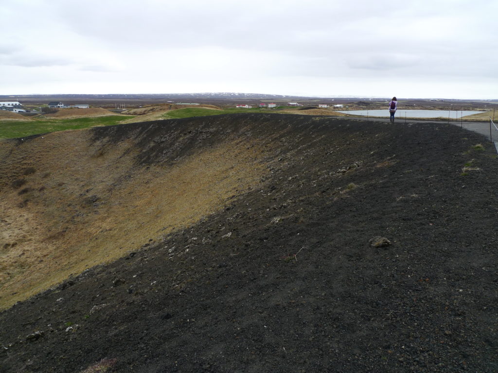 We drove out from the village and over to a bigger crater called Hverfjall, this being a real volcano (yes mom it’s dormant). The climb to the top is rather exhausting and the thing is huge, like a massive bowl more than a kilometer across. It’s all grey sand and rock which makes it frustratingly featureless to take pictures of but I ensure you, it’s very impressive.
