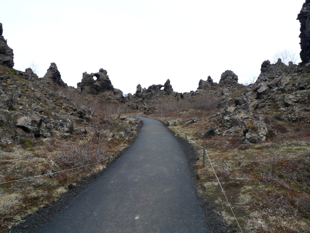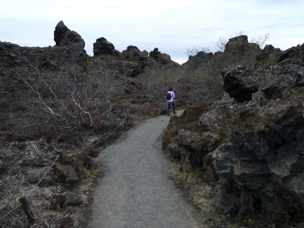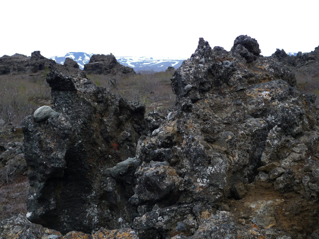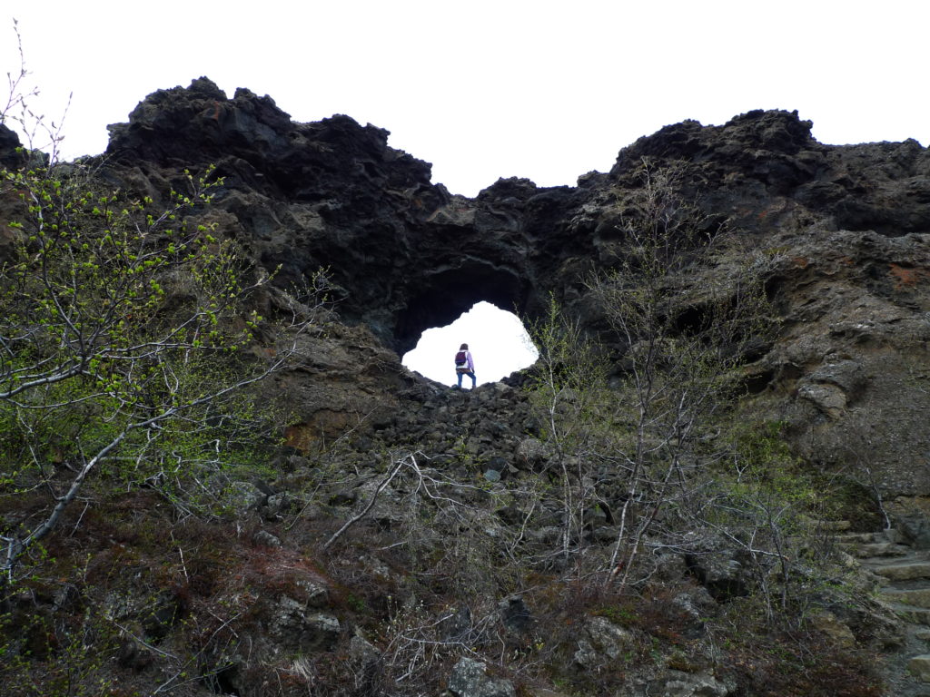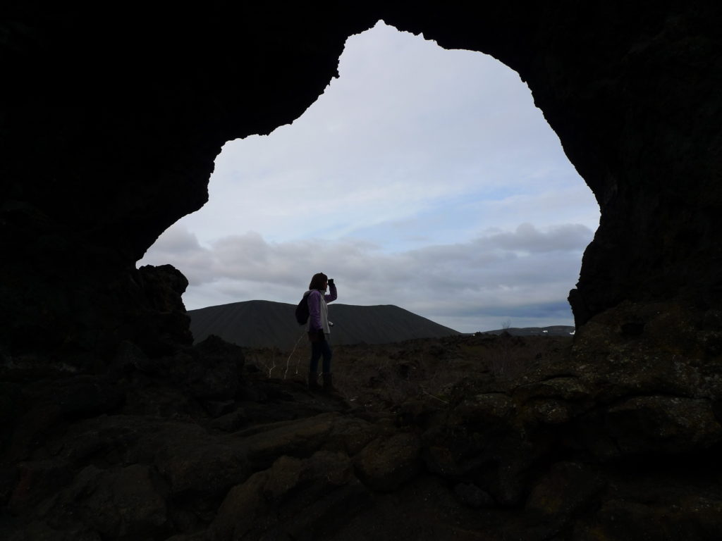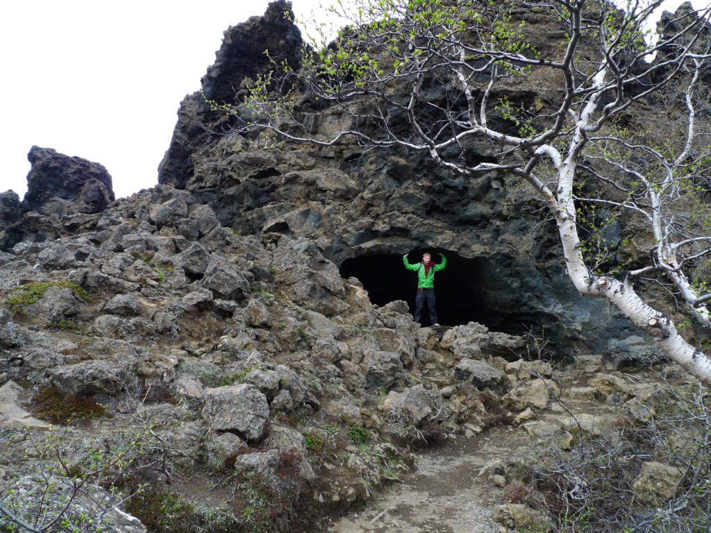 Feeling a bit sick with the sulfur smell, and well satisfied with geothermal activities, we headed down to the lake, dropped off our hitchhiker and checked in to our hotel. The surroundings of lake Myvatn are chock full of tourist destinations and it turns out our hotel is right in front of one of them. Naturally, this then became our starting point for exploration.