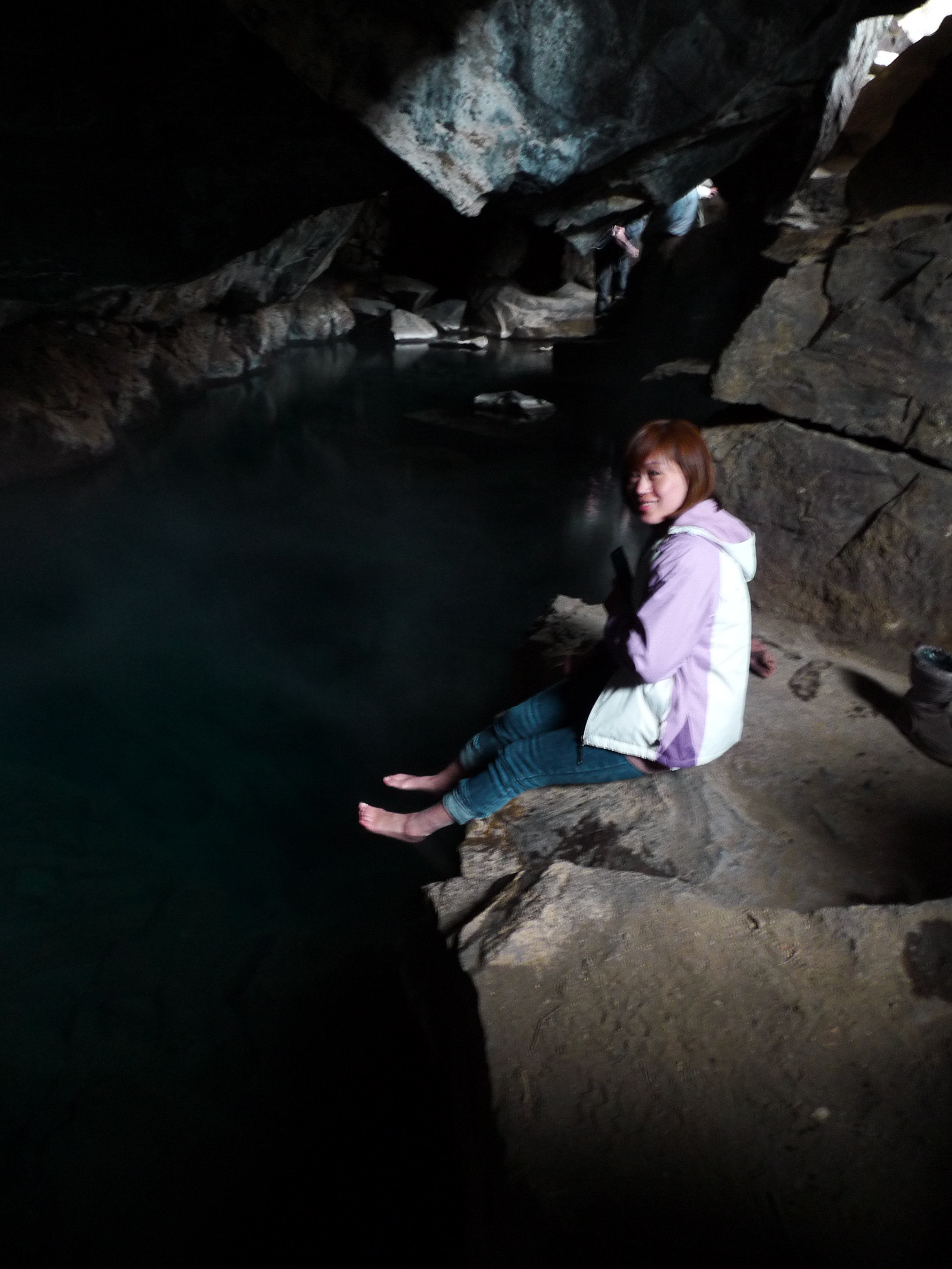 When we came back from our stroll among the lava formations, it was about dinner time. We had some fantastic local bread with smoked chart as a starter and some mediocre mains. We finished the day by going to some natural hotsprings inside a cave. The water was too hot to go for a swim but we at least got to dip our feet.