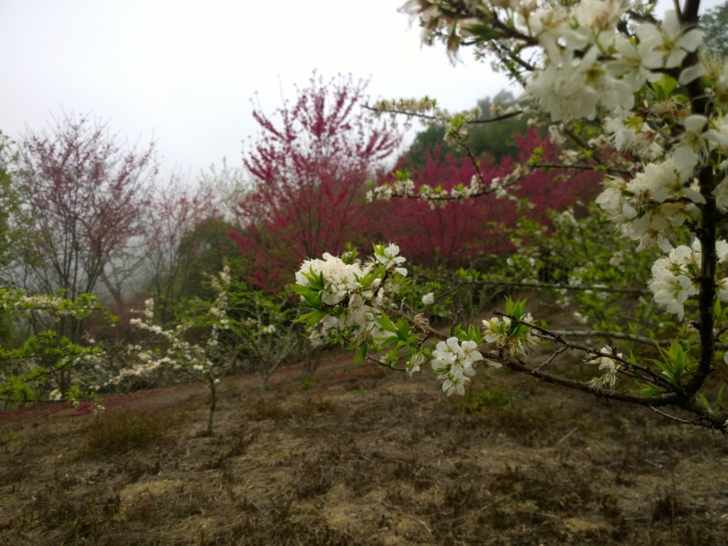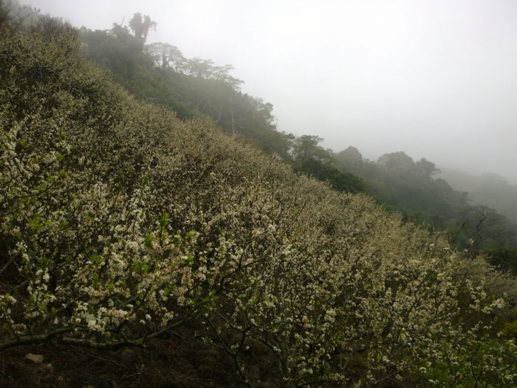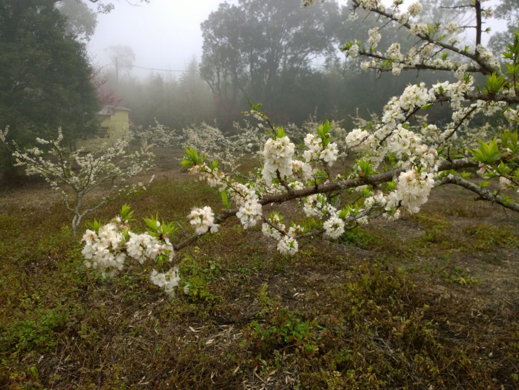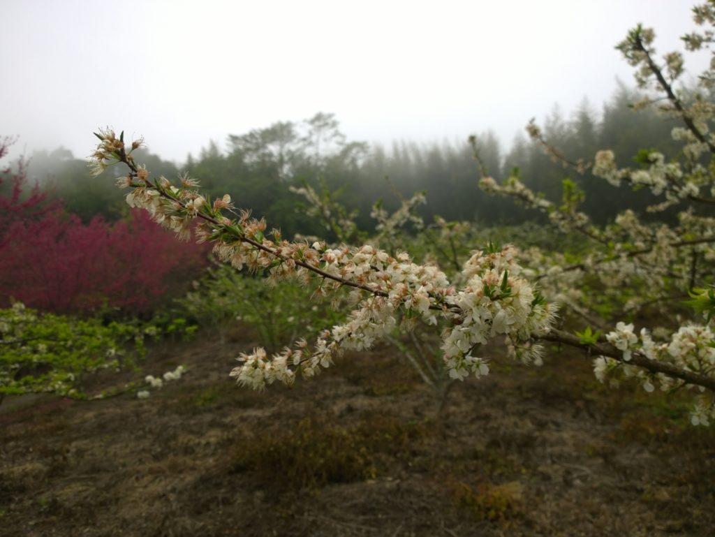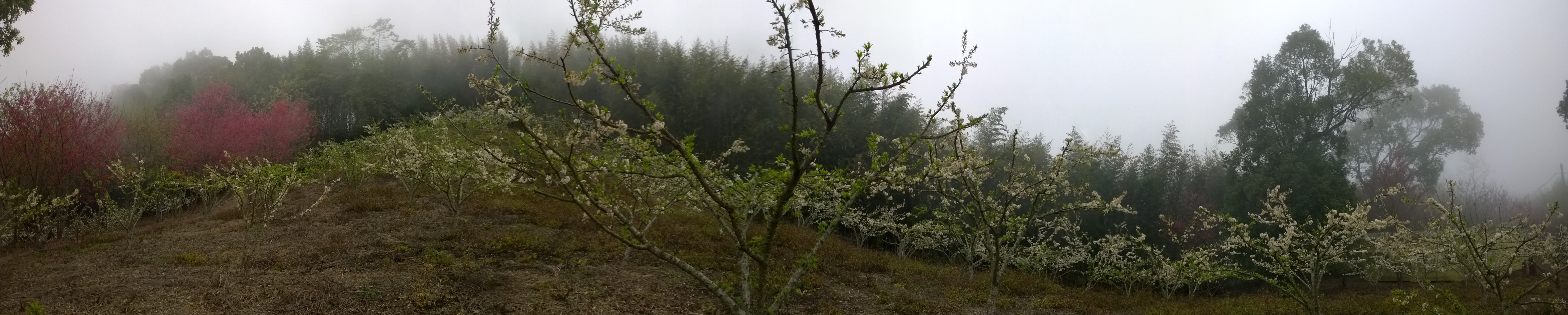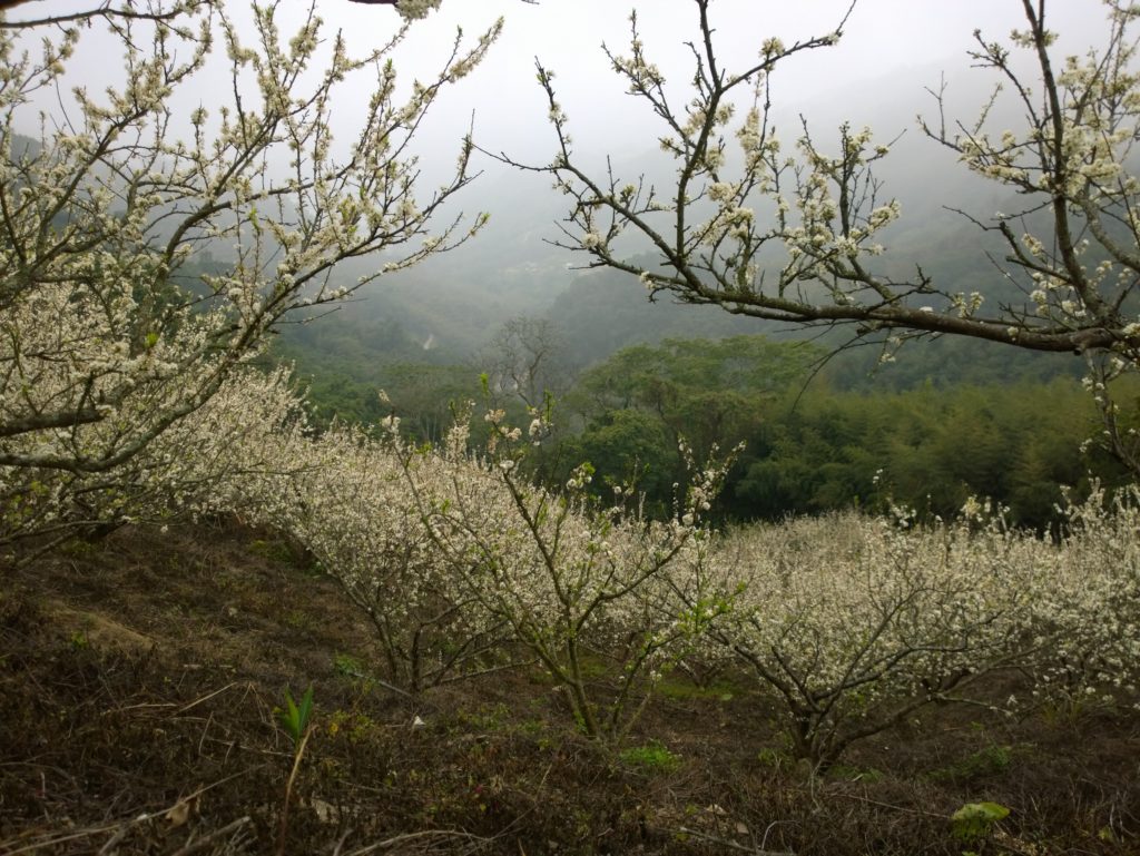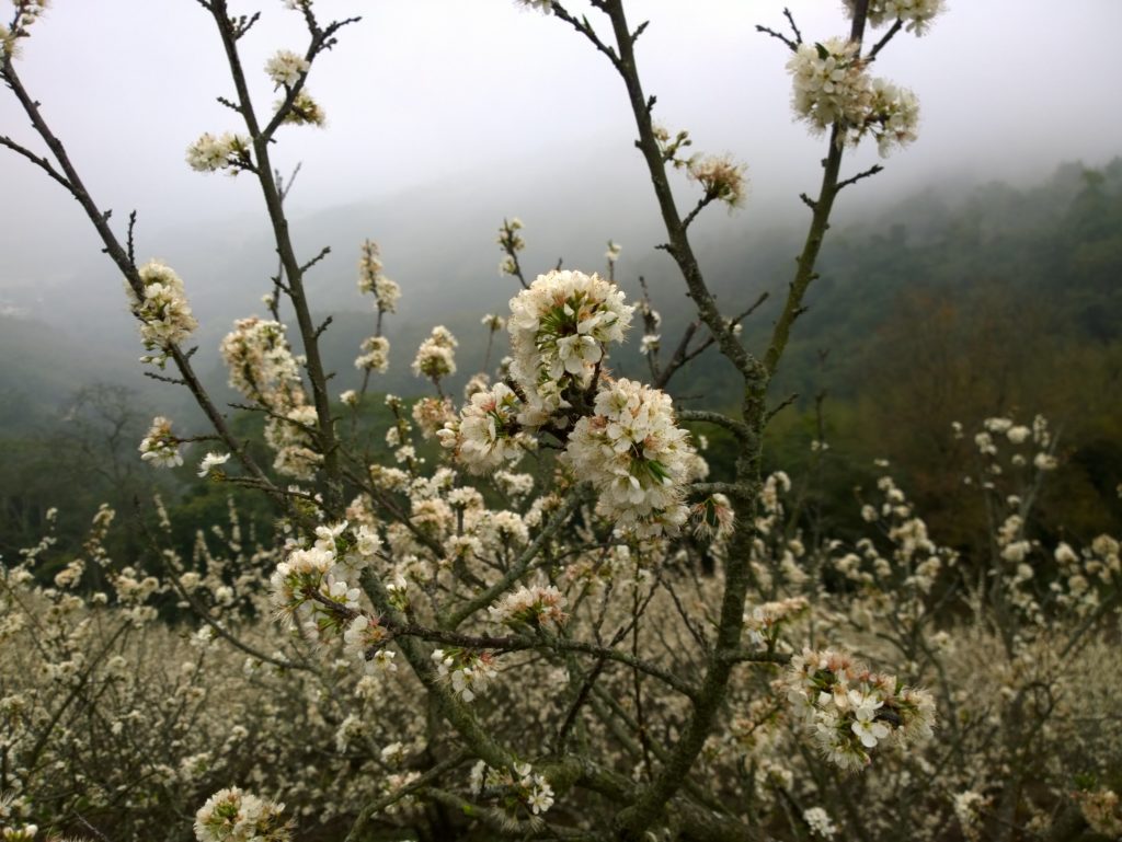 Today we went on a small roadtrip up into the mountains. The goal was a newly opened section of road that is supposedly similar to the central belt road, which is the road that snakes across the central mountain range from west to east. We went by various smaller country roads rather than the highway and around two in the afternoon we turned up into the mountains. The road we followed was narrow and bumpy and we wound our way upwards and then, as we came around a bend, a large sloping field of white, blossoming plum trees opened up on the right. What a sight it was, we just had to pull over, this is what we saw: