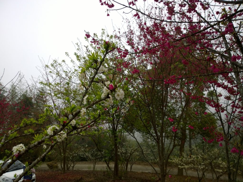 It was rally amazing, all these trees, plum trees in white and a few cherry trees in bright pink. We spent a little while walking around, marveling at the beauty before we drove on. A little while later we came down to the road we were looking for. It was just was narrow, and almost more winding than the last we had been on but the asphalt was new and smooth. We continued along this soft ribbon of asphalt, and after a few more twists and turns, we came to another field of plum trees in bloom.