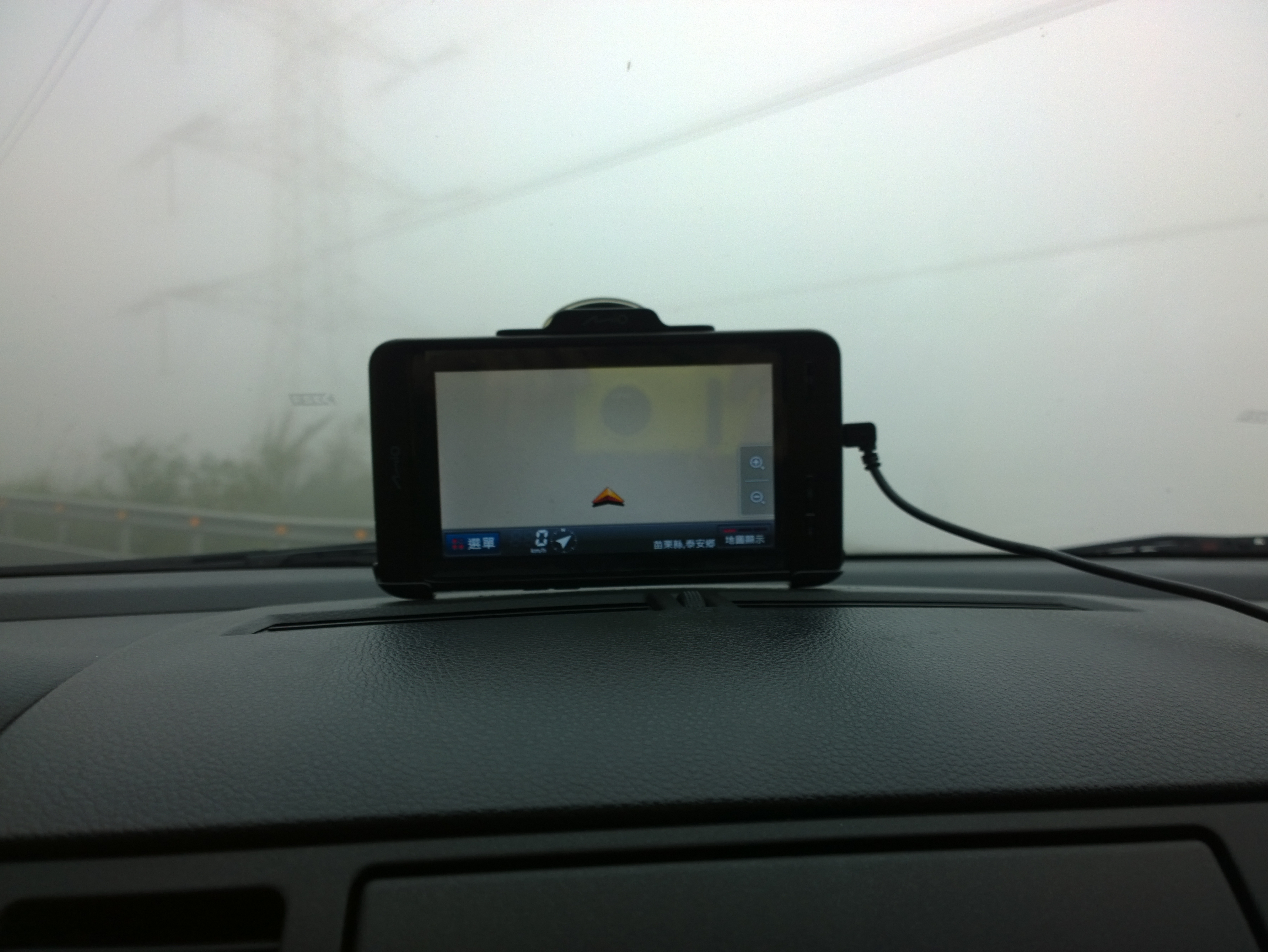 For a while we kept passing plum trees, with a few cherry trees here and there. I must say, it is one of the most beautiful roads we’ve driven for a while. We got down to the valley, then continued to climb up the next mountain, and as we did it started to get foggy. The fog got thicker the higher up we got, like driving through milk. Eventually we got to the part of the road that isn’t on the maps (at least not yet) and driving through the the mists, barely able to see twenty meters in front of you, with just a blip on an otherwise empty GPS screen, makes for an almost surreal experience.
