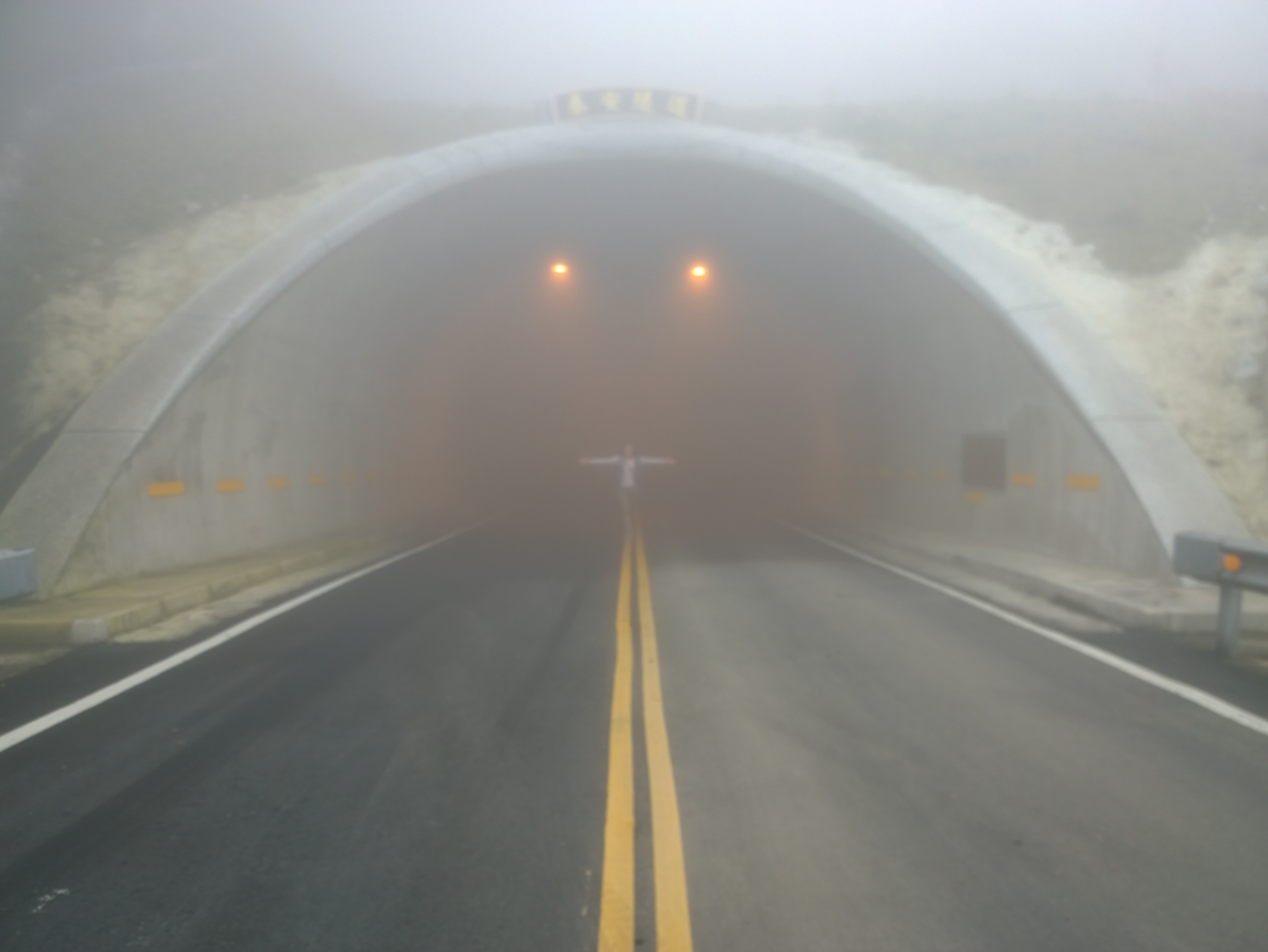 After some time we go to highest point along the road. On a clear day we should have been able to to see the valley below us and the road zigaging down the mountain which would have been cool. As it was we just stopped for a short while then crept through the mists back down to the valley and back home.
