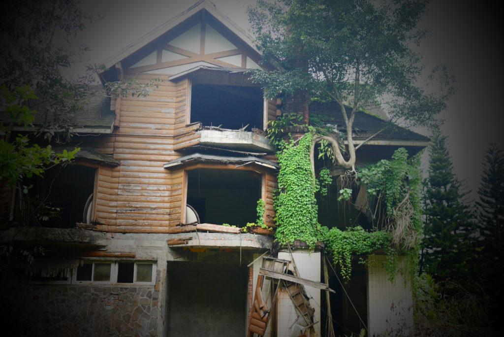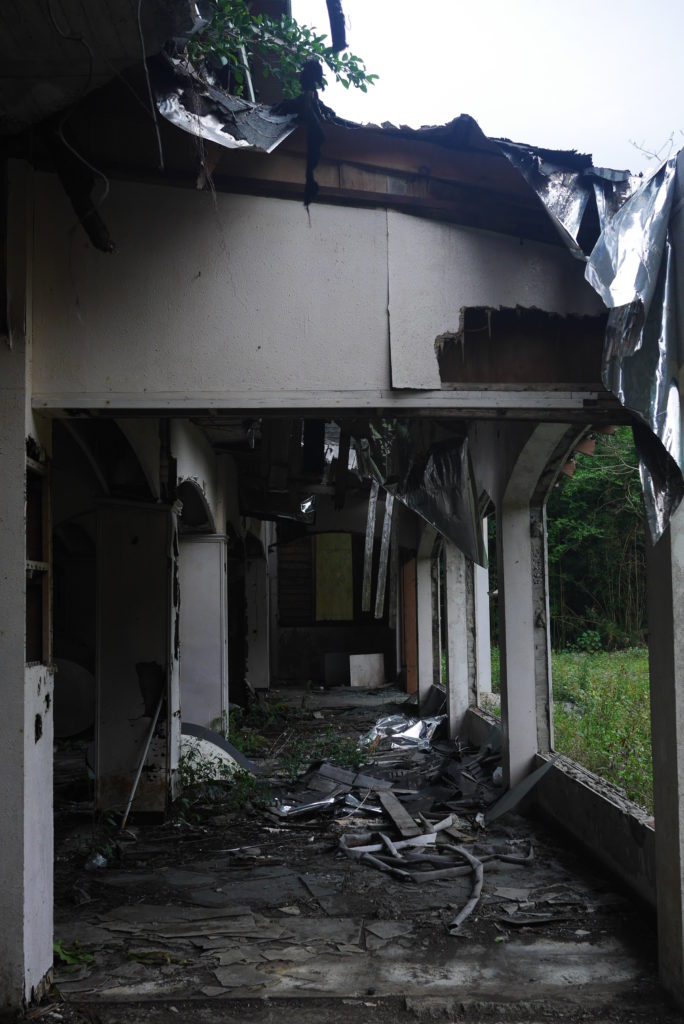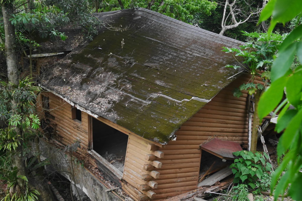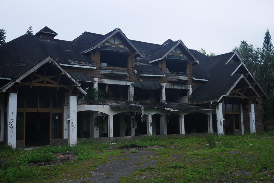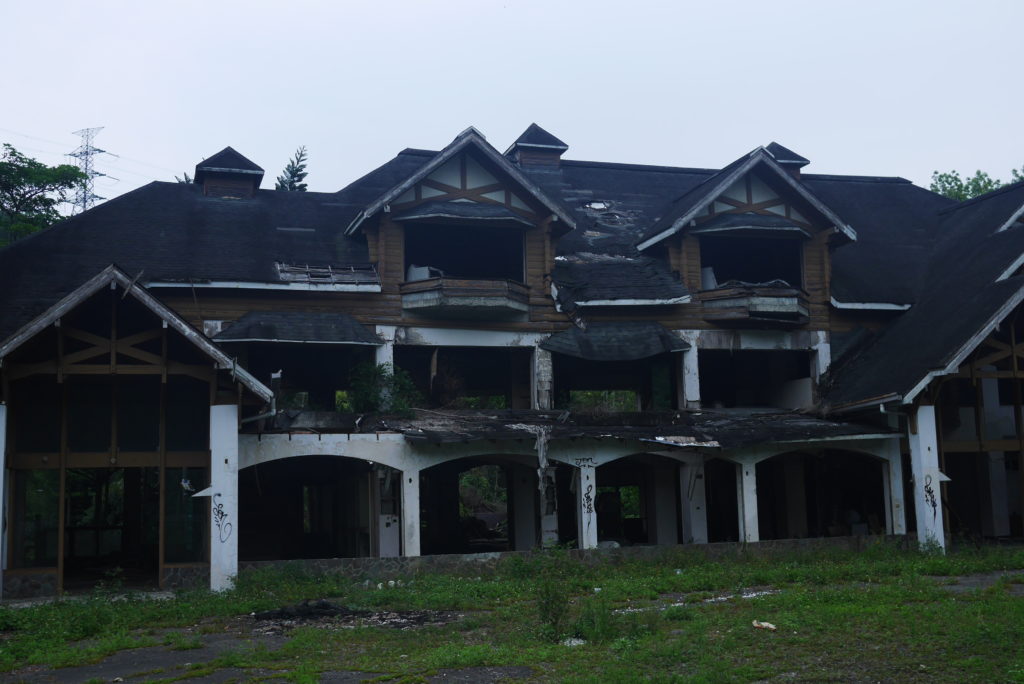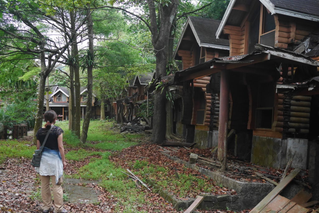 Having walked several of the trails we felt pretty satiated with forests and mountain trails, and since the other attractions in the area seemed to be more of the same we decided to drive home. On the way Yini spotted what looked like an abandoned hotel, and I just had to stop. It wasn’t just a hotel but a whole little resort with the main building by the road and several wooden cottages out back. There seemed to be someone living in one of the cottages but the rest of the place was pretty badly damaged; several cottages were in a state of collapse and there had been a fire in the main building. Judging from the state of things the place must have been empty for decades. Anyhow, it was all very exciting to a lover of abandoned places like me.
