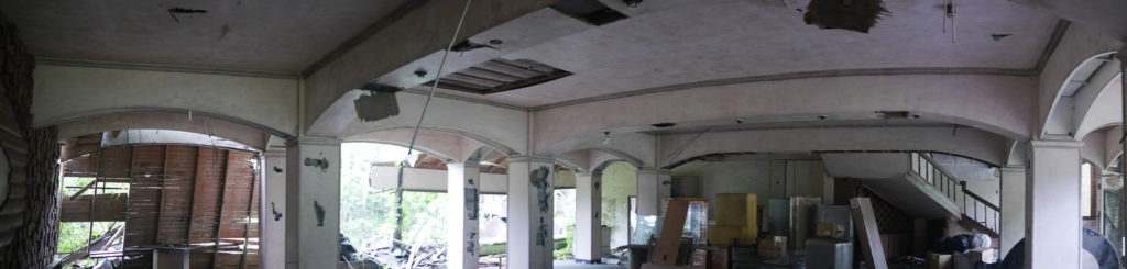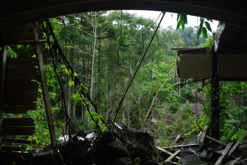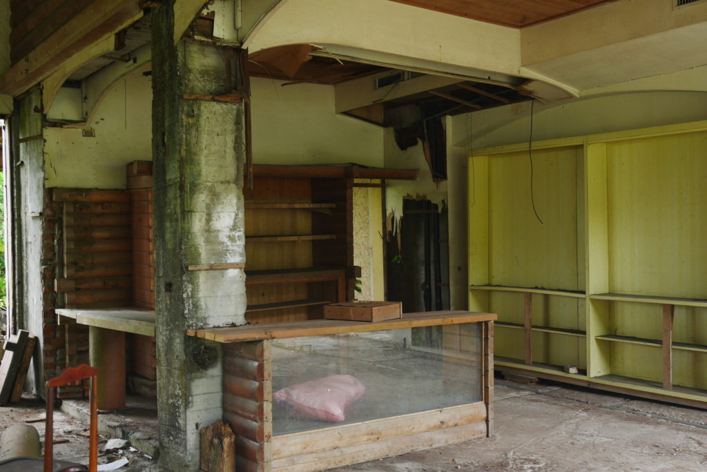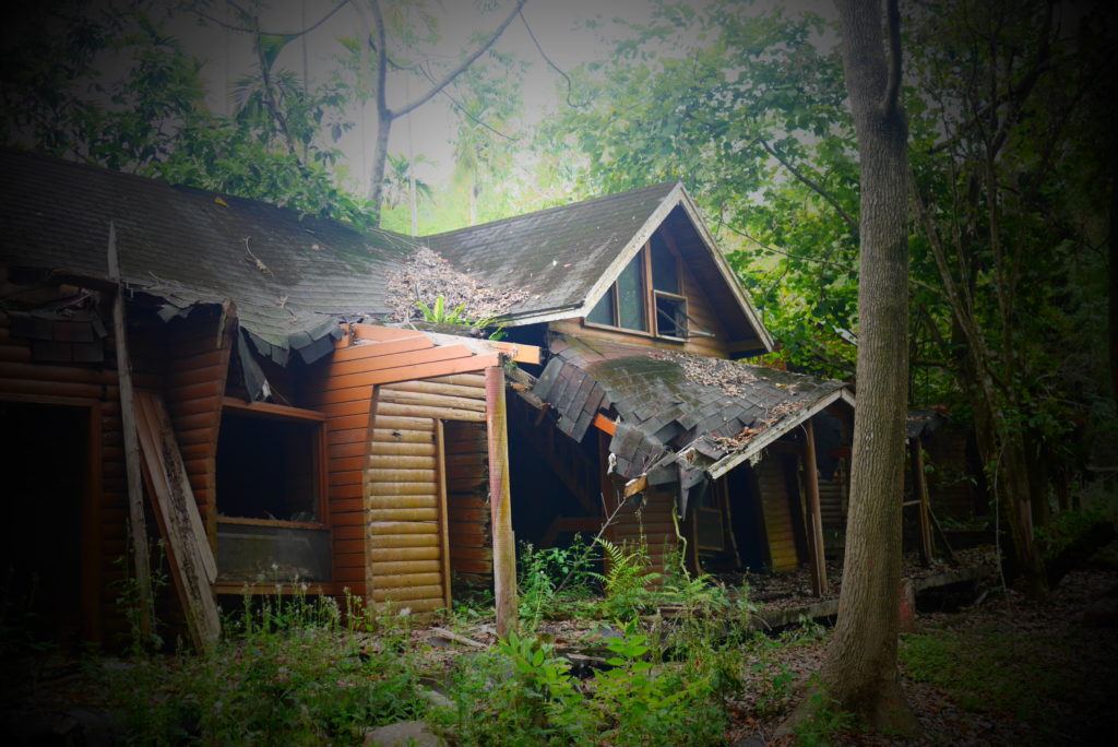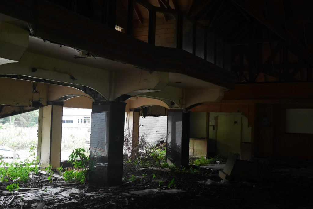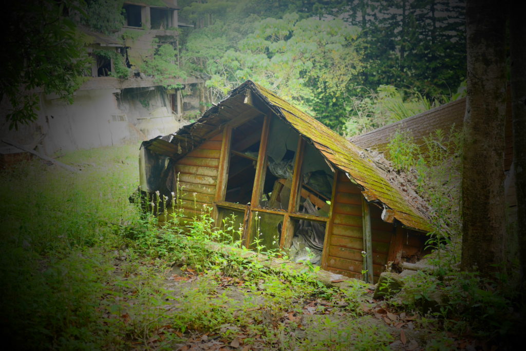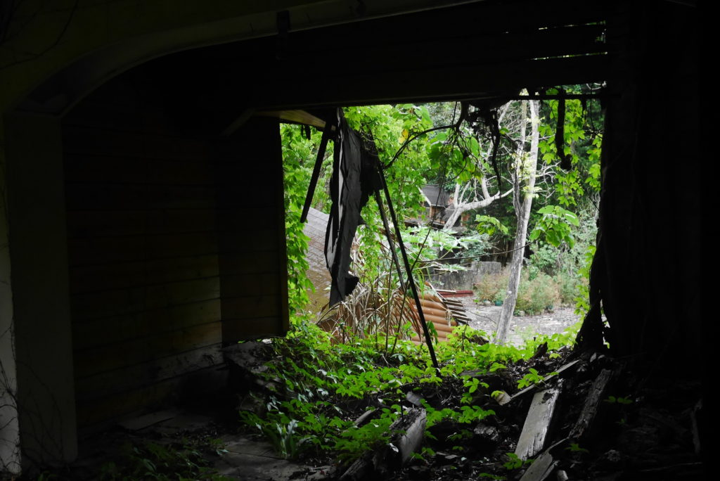 Having walked several of the trails we felt pretty satiated with forests and mountain trails, and since the other attractions in the area seemed to be more of the same we decided to drive home. On the way Yini spotted what looked like an abandoned hotel, and I just had to stop. It wasn’t just a hotel but a whole little resort with the main building by the road and several wooden cottages out back. There seemed to be someone living in one of the cottages but the rest of the place was pretty badly damaged; several cottages were in a state of collapse and there had been a fire in the main building. Judging from the state of things the place must have been empty for decades. Anyhow, it was all very exciting to a lover of abandoned places like me.