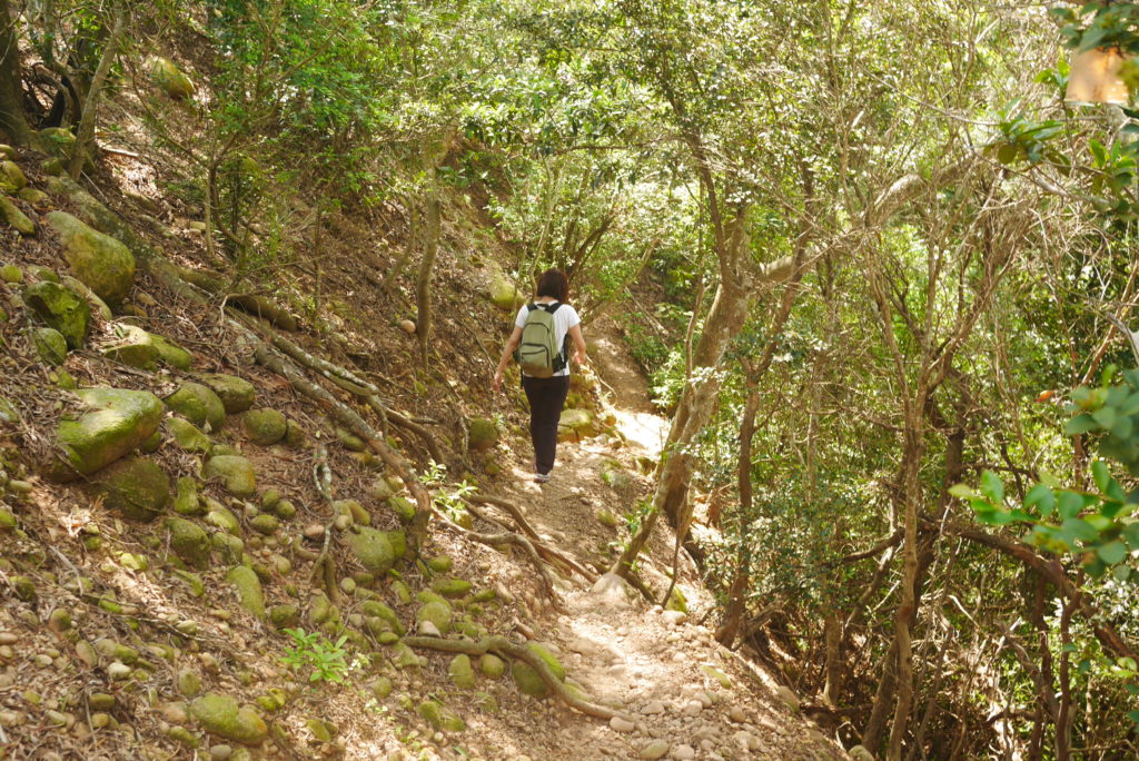 There was a higher peak a little bit further on but by now we felt rather satisfied with mountaineering, and we were running out of water besides. So, we skipped the final peak and instead took the trail that went round and back to the parking lot. It was a slightly wider trail through a dark, damp forest, so strewn with rocks it was more like a dried river bed than a trail. We stumbled along, all the time surrounded by millions cicadas, their combined shrieking reaching near rock concert sound levels at times, it felt fairly miserable. Coming back to the parking lot some three hours after we set out felt really good.