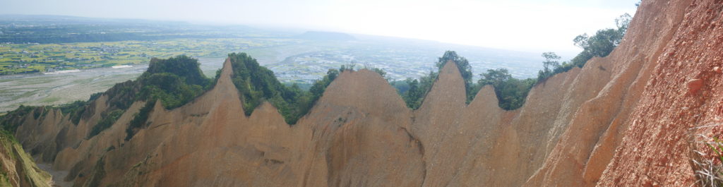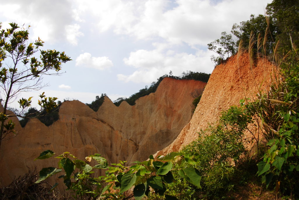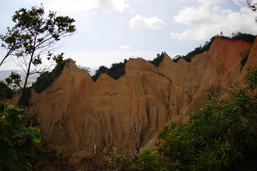 Every time we drive south on the highway we pass a series of cliffs and ridges formed of orange soil, that are commonly called Flame Mountain. Recently Yini found out there is a walking trail there so last weekend we went to check it out. Since my scooter has been feeling tired and slow lately I bought a new one on Friday and to test it out we went there by scooter. It was more or less just a long slog on boring roads but thanks to the new scooter it felt effortless.