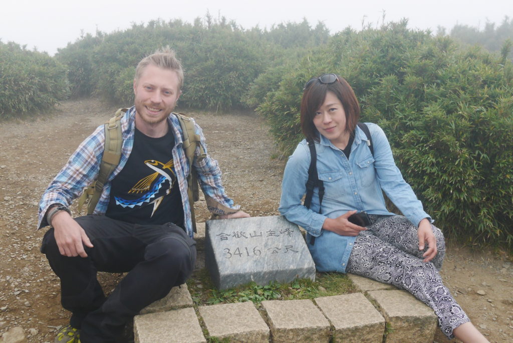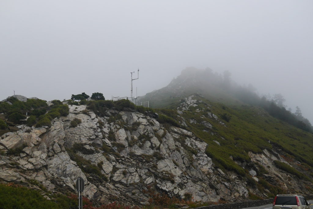 After lunch we drove deeper into the mountains on a road shrouded in mist. It was exciting, kind of like being in a Lord of The Rings book, sadly we missed out on the view which I’m sure would have been spectacular on a clear day. About an hour later we were nearing the top of mount Hehuanshan on Taiwan’s highest drivable road (highest point 3275m). We parked our car at the road side then hiked the remaining few hundred meters to the peak. It was a pretty easy walk to the top, just too bad it was too misty to see much of the view. At 3416 meters this is the highest point I’ve ever been, I think I need to climb some higher mountains in the future.