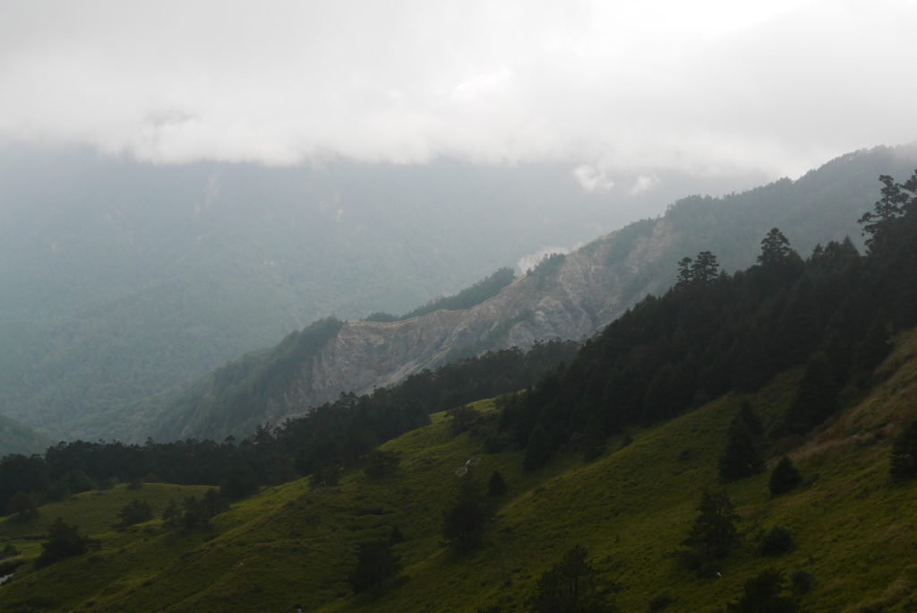 When we came down from the peak we drove on through the mist for a while to the high point along the road, Wuling, then down towards the nearby visitor center. Miraculously the mist cleared and we got a great view of the forest clad slopes. The landscape up there is so different from the rest of Taiwan it felt like we’d taken a wrong turn somewhere in the mist and ended up in another country.