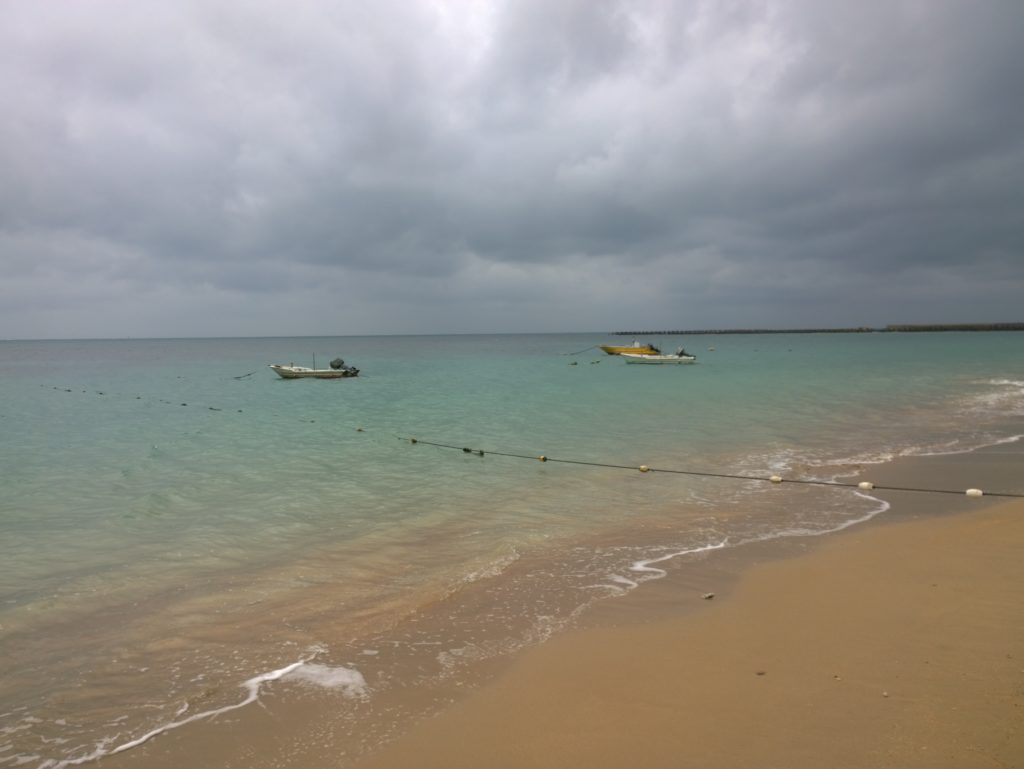 At the far end, near some tall cliffs I found a nice area to explore. It was by no means as good as a coral reef but I still saw several colorful fishes. When I got out of the water, slightly chilled and with a salty taste in my mouth, we went to the next beach just a short distance along the coast and had lunch at a cafe there. The lunch was perhaps not great but the view of the smooth sand and turquoise waters was awesome.