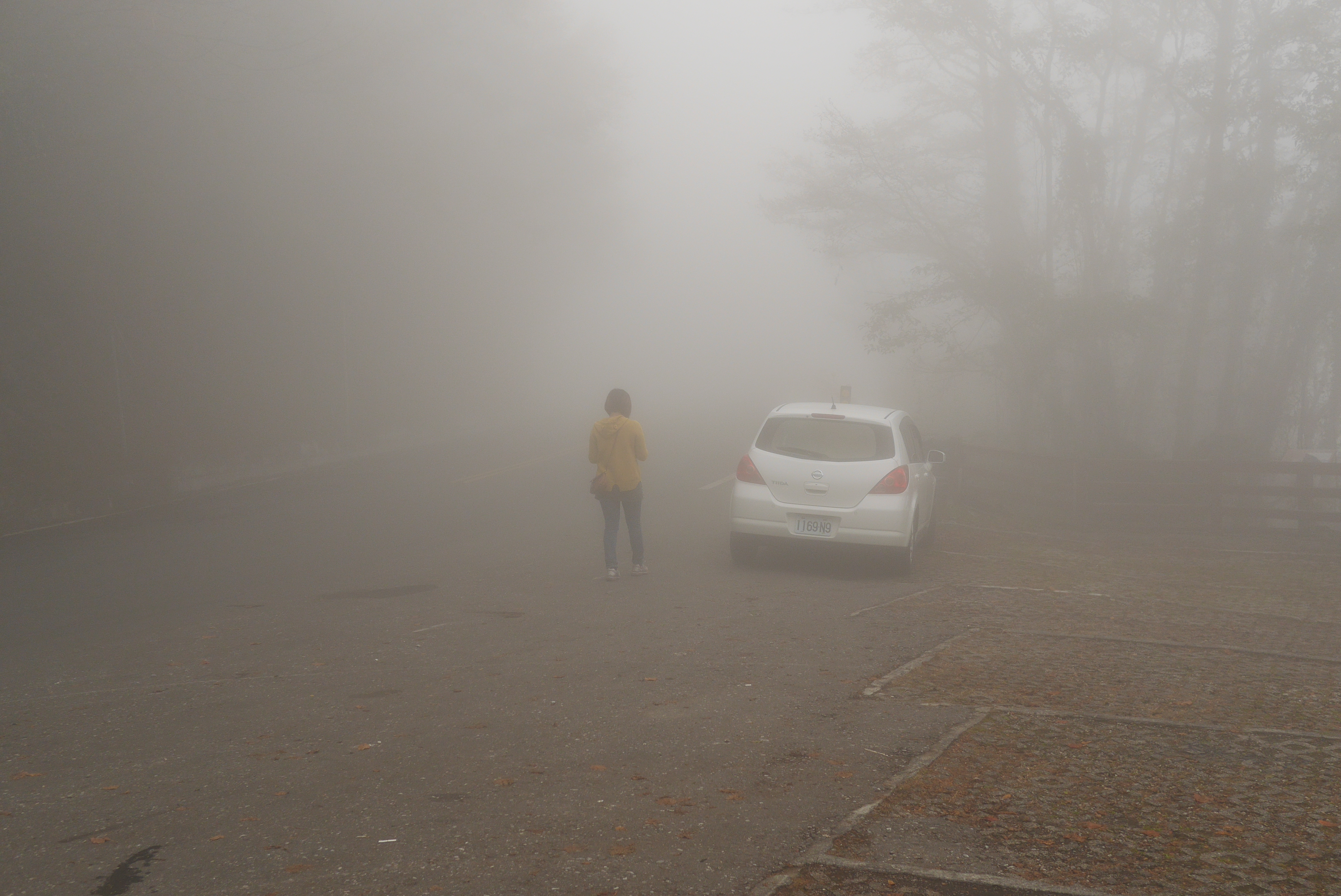 As gorgeous as the landscape was up there, we had to continue if we wanted to reach the east coast before nightfall. We drove onward, and quickly dove into the mist, it was so thick we could barely see in front of us.
