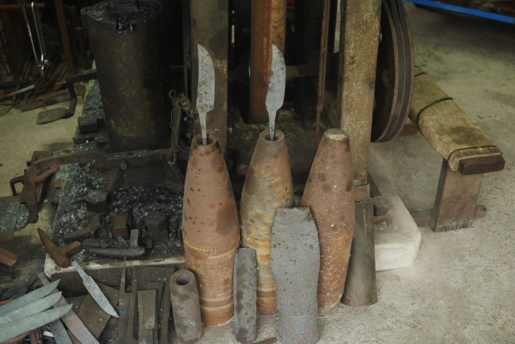 It is a real blacksmith shop where knives are made in traditional ways. We were lucky enough that the owner was just about to make a knife shortly after we got there, so we could watch him work. What’s extra special is that he takes some of the steel for the knives from old artillery shells.