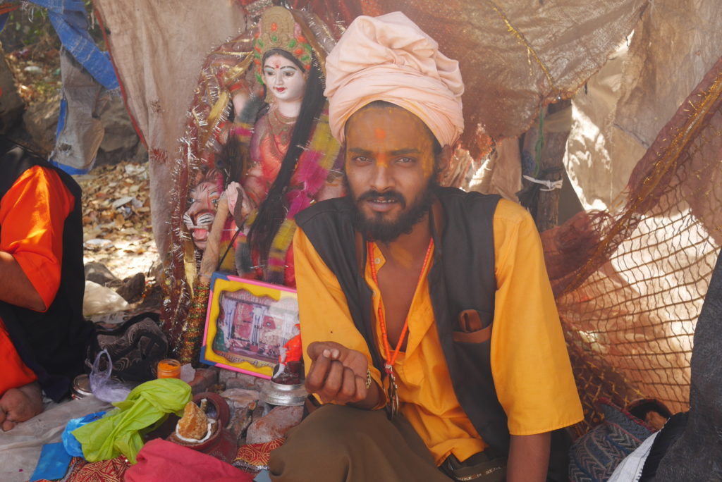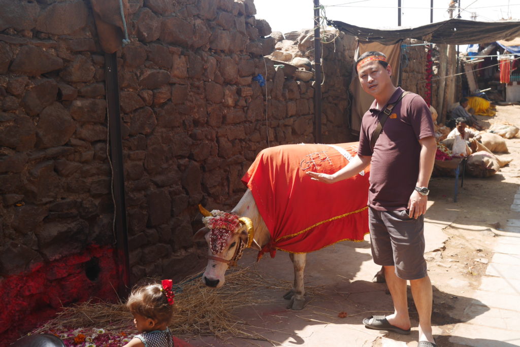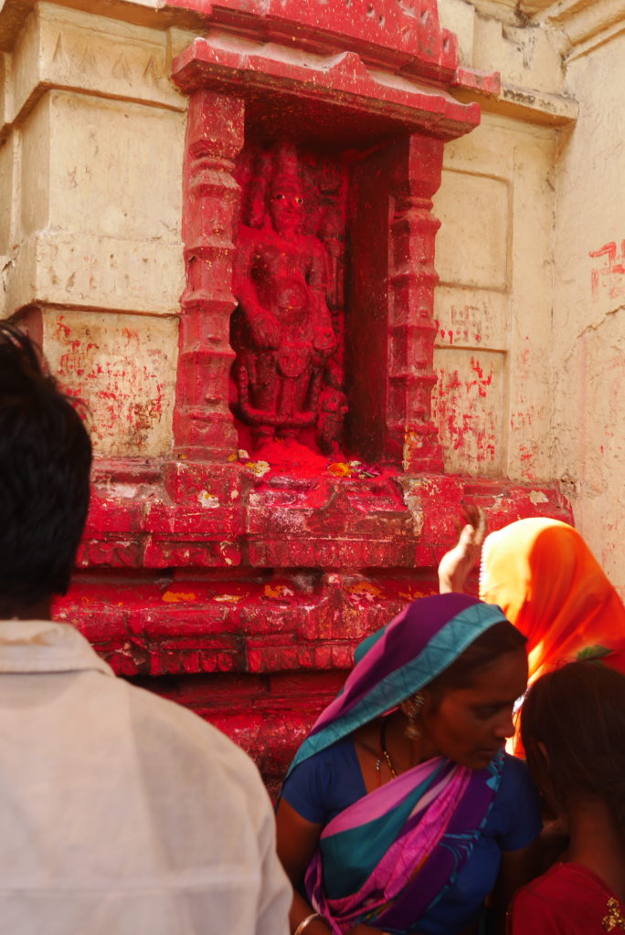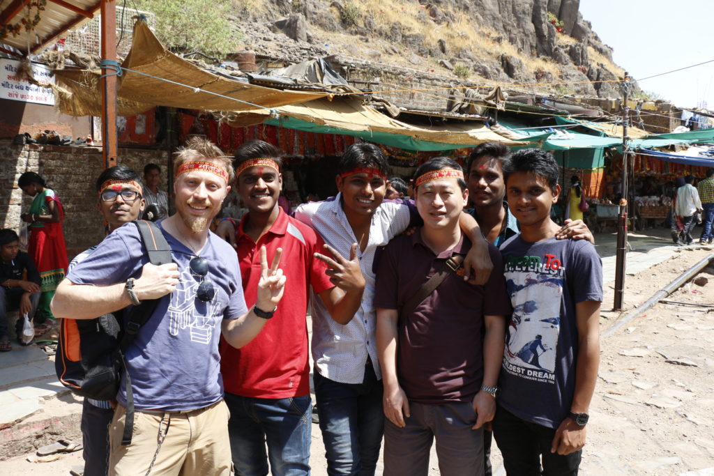 A while later we arrived at a steep set of stairs but before we climbed them, a man handed us some kind of religious headbands to put on. We climbed up, pausing several times along the way, then got to temple itself. It was surprisingly small and not quite so impressive looking as I thought it would be. We were hoarded around, following a path of metal fences, passed the main shrine then out again, only getting a few moments to dab some red pigment on our foreheads. We were then ushered back down by a guard trying to control the flow of people.
