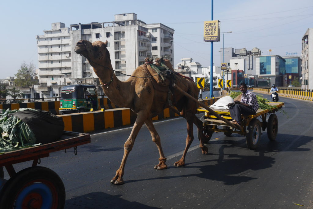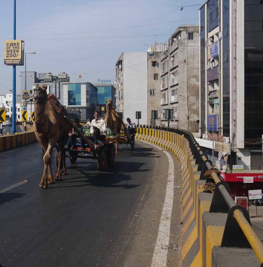 Except for the Laxmi palace, the most famous place around Vadodara seems to be Pavagadh temple which sits on a mountain top close to the town of Halol. So naturally, we choose this as our main destination. On the way out of the city, we passed a couple of camels on the road, for us foreigners this is pretty much unheard of but we passed them too quickly to get our cameras out. Our driver noticed this however and kindly pulled over to let us snap a few shots.