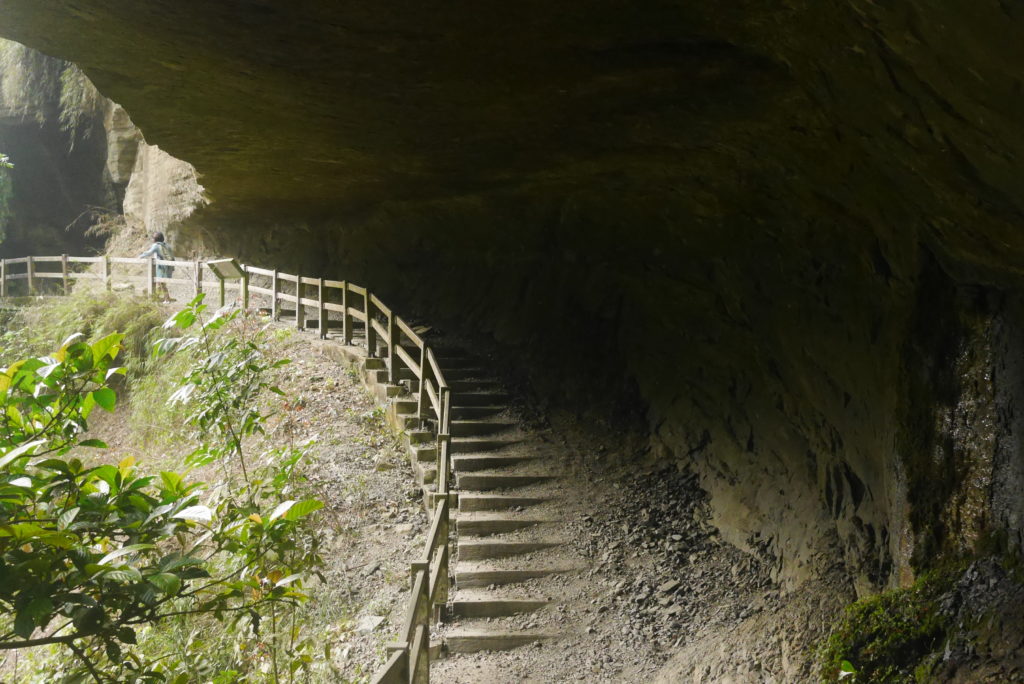 When we got there we only had about an hour of daylight left but luckily it was pretty short. The trail was really well built, with smooth steps and a sturdy railing which I think feels a bit like cheating but otherwise it was good. After twenty minutes of walking we got to the bottom of a gorge. We crossed a suspension bridge and just around the corner we reached the main goal, two large caves.