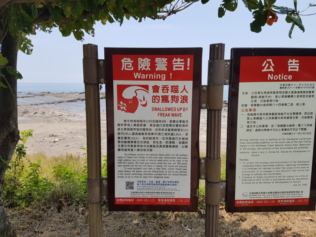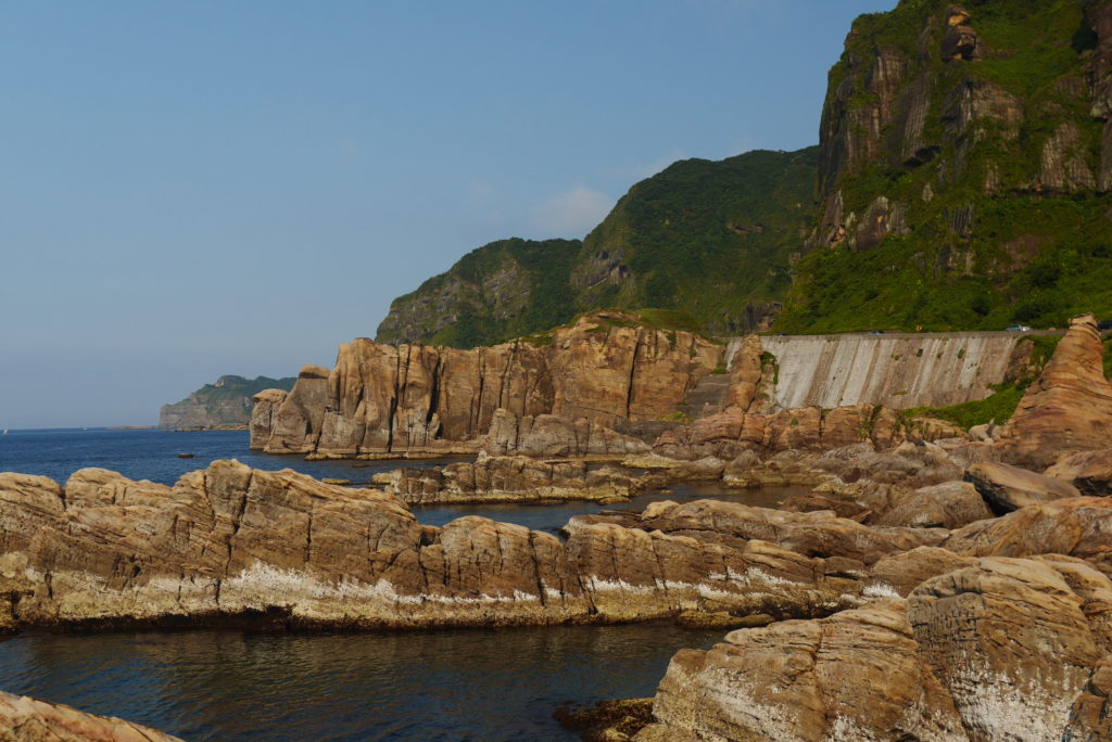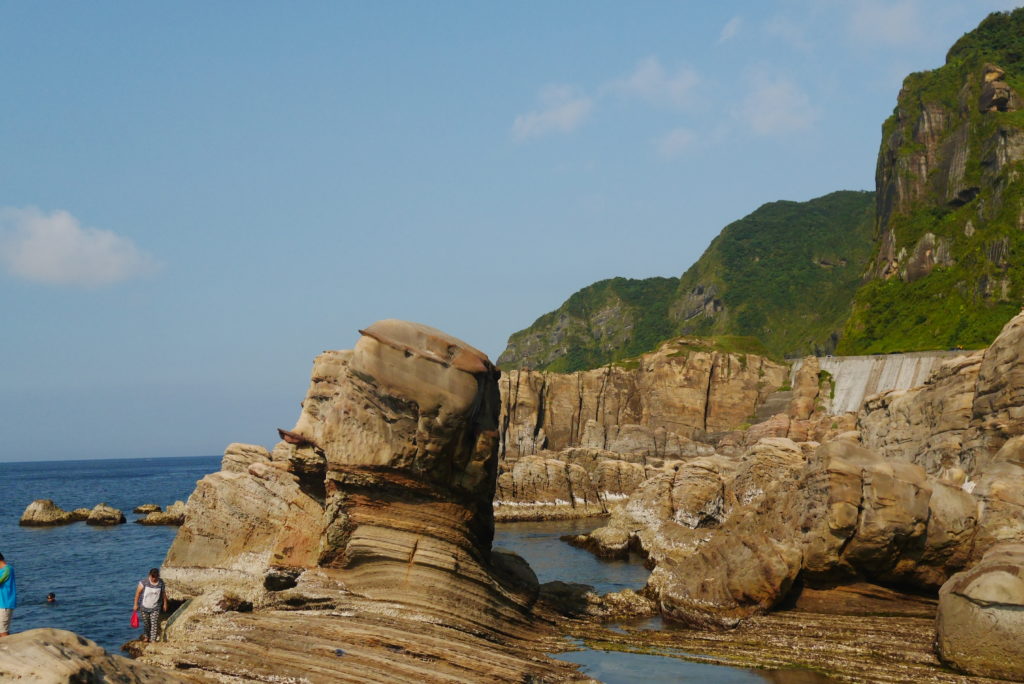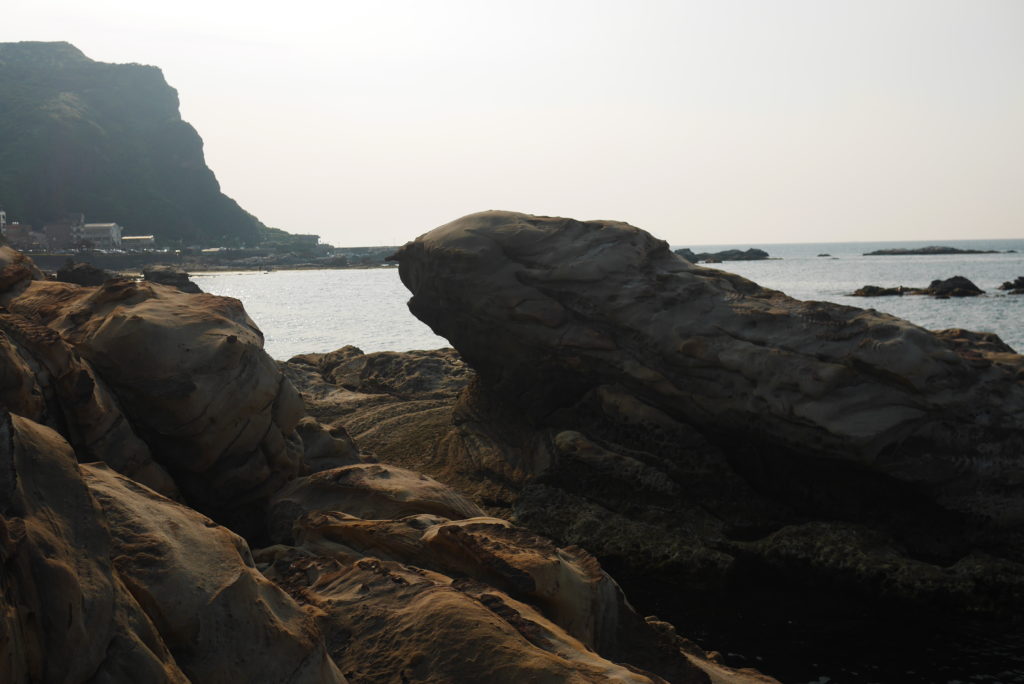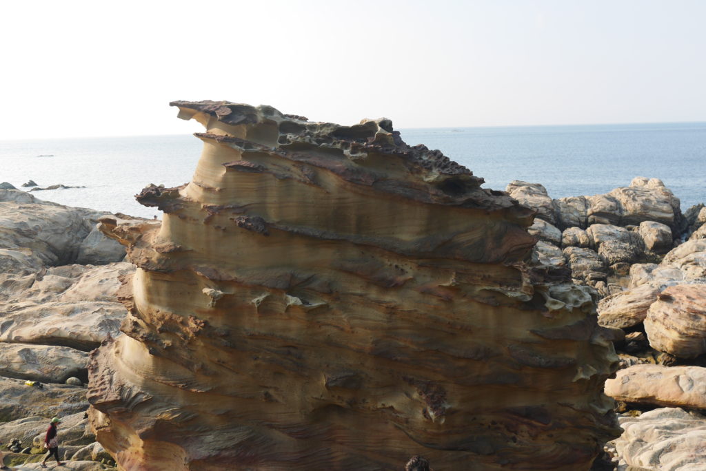 One very famous place on the north coast is Yeliu Geopark, a place full of strange rock formations. I’ve been there a couple of times and it’s pretty touristic and often full of people. We figured it would be better to find some similar but less known option. As it happened there is a place called Nanya Rock Area not far from Fulong so we headed there. Not only were there fewer tourists than Yeliu, it was also less controlled, so we could climb around on the rocks as much as we wanted.